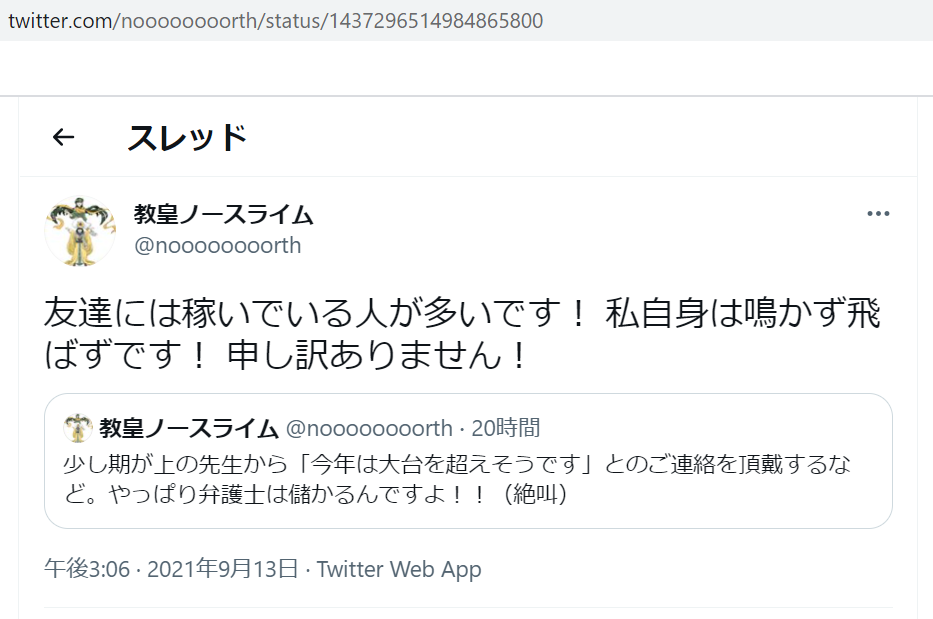 頭おかしいブラック北周士弁護士(法律事務所アルシエン)のツイート置いておきましょう。やっぱり支離滅裂な雰囲気。お困りの方になってきてますね。
