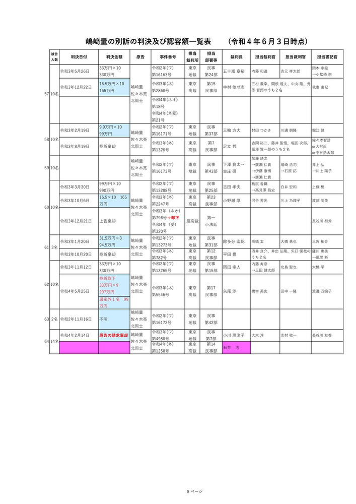 それでは、判決金額を網羅した、日本の司法の腐敗が一目瞭然のデータを一挙公開です。