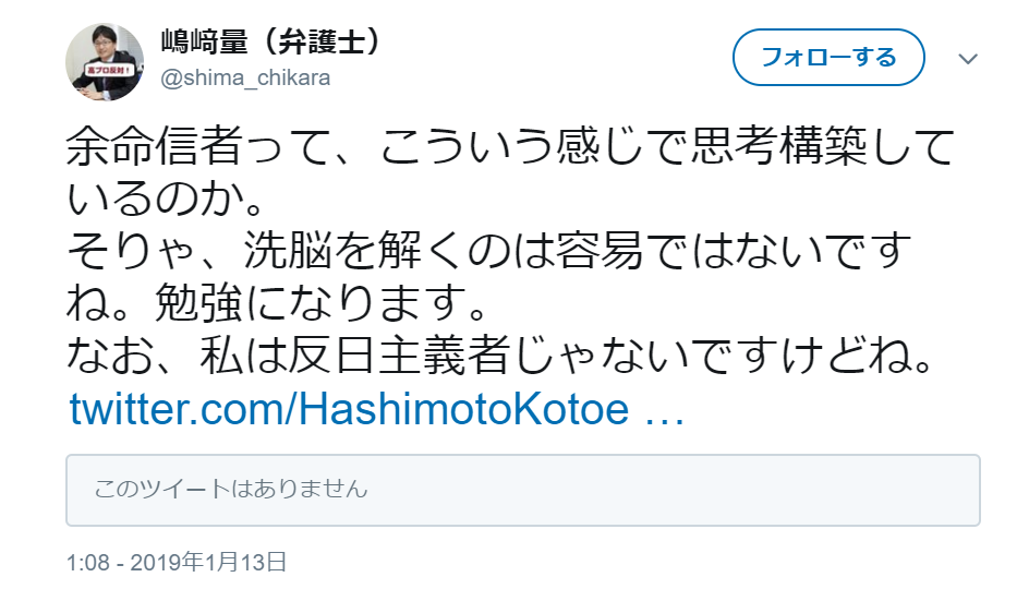 なお、嶋﨑量弁護士は確定してから執行すると虚偽のツイートをしている。