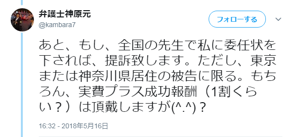 では、裁判所と裁判官の皆様に、神原元弁護士の正義ツイートをプレゼントしますね♡