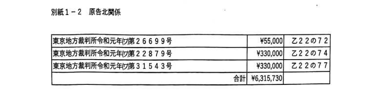 イ そして、上記⑴で認定した事実によれば、原告らは、選定者ら以外の原告らに対する懲戒請求をした者から、懲戒請求をしたことによる不法行為に基づく損害賠償債権の履行として、既に弁済を受けており、その額は、原告佐々木につき851万6183円、原告北につき631万5730円、原告嶋﨑につき600万8796円であるから(認定事実ク、原告らが、原告第1準備書面において、同種事案であることを認めた訴訟に限ってみても、別紙2の1ないし2の3のとおり、原告佐々木及び原告北は各合計436万3649円、原告嶋﨑は434万8211円の弁済を受けていることとなる。)、本件懲戒請求による不法行為に係る損害は、既に填補されており、原告らは、この額を超えて賠償を求めることはできない。