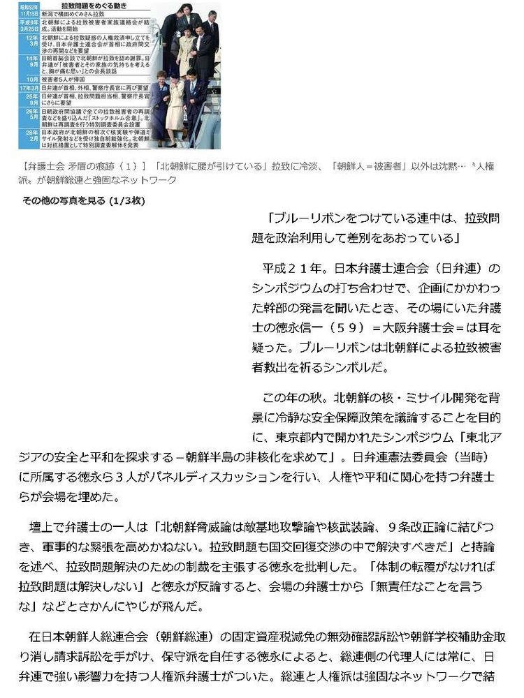 「日弁連はいわば総連の工作拠点。人権派が総連に取り込まれた影響なのか、日弁連は拉致問題には終始、消極的だった」