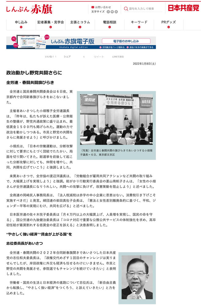 以下の事実関係を見ますと「本件ブログ主」は共産党に期待し過ぎでは?