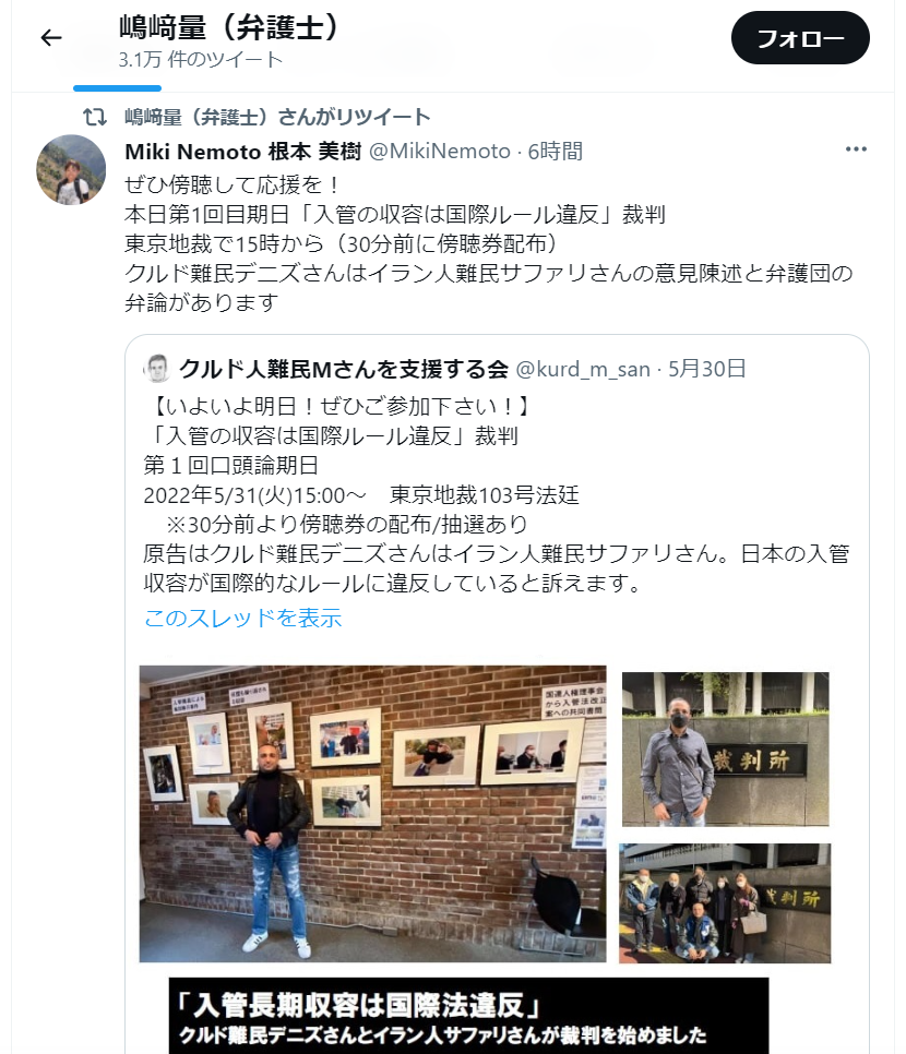 おやおや、嶋﨑量弁護士のリツイート、非常に不穏な動きがありますね。