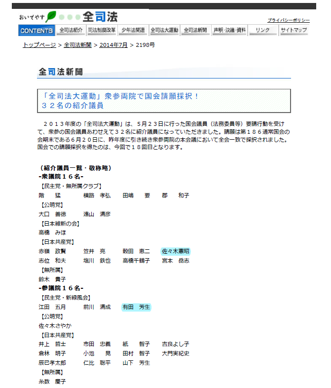 全司法労働組合の請願でも仲良し