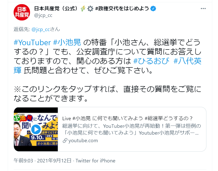 公安調査庁をとてもバカにしていますね。いいのかな、このような政党が日本の公党として存在し続けている日本はお花畑の国と言われても仕方ない。