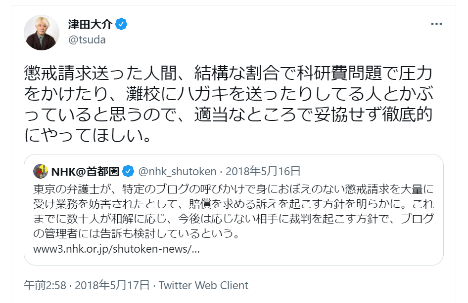 そうだ、小倉秀夫先生は津田大介氏の代理人も務めていたってことは、岡口基一判事と津田大介氏は小倉秀夫先生のお仲間ね。