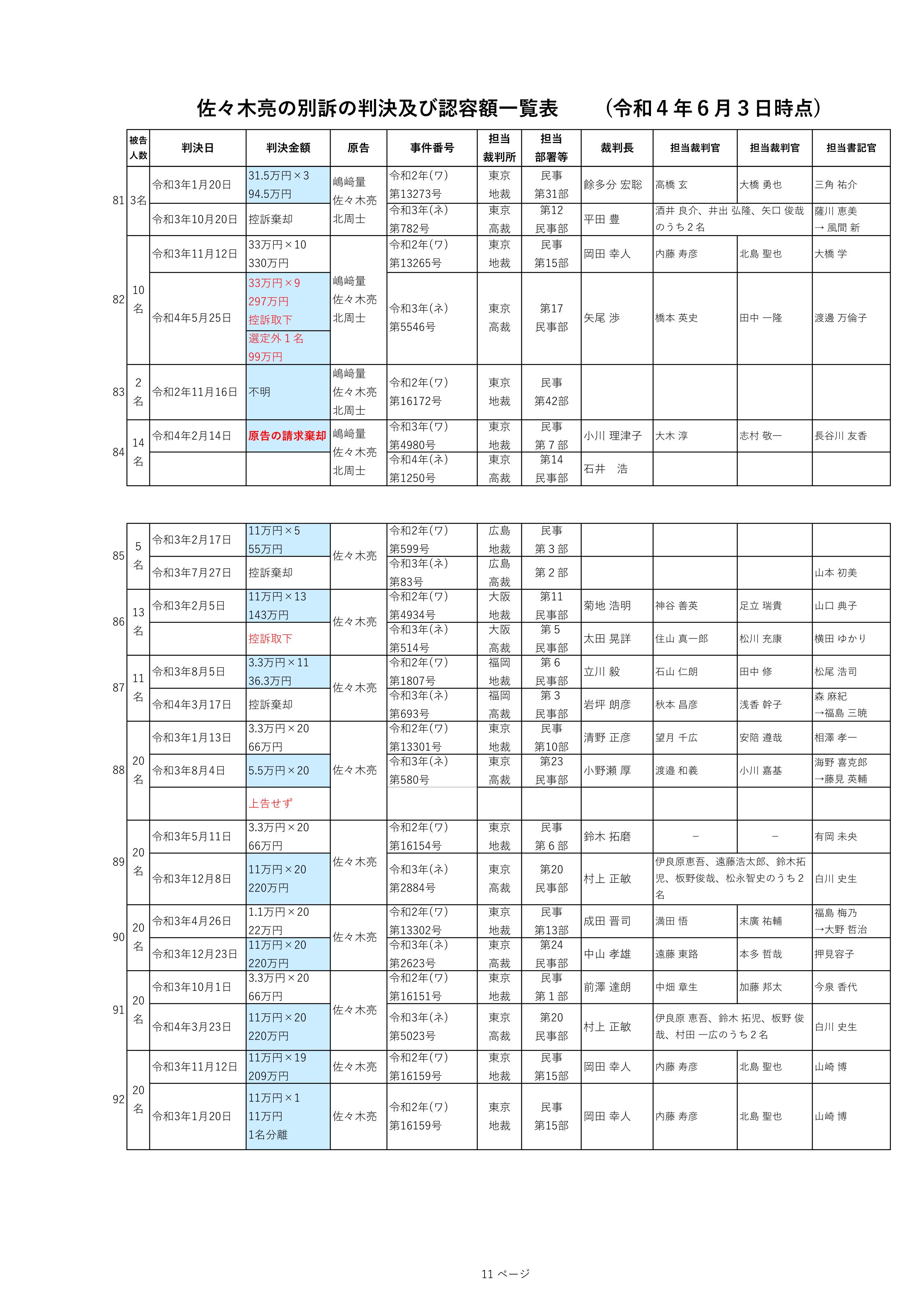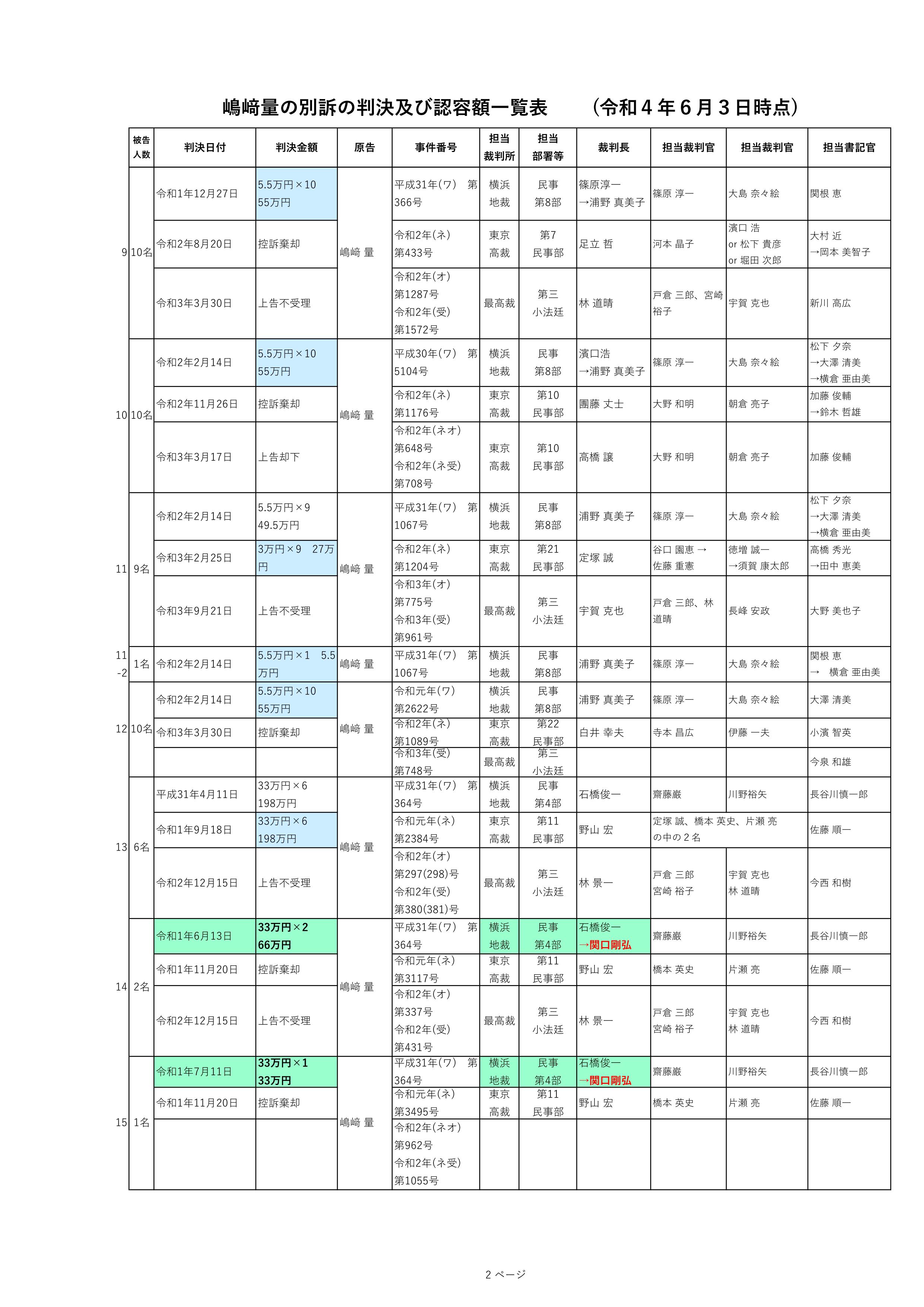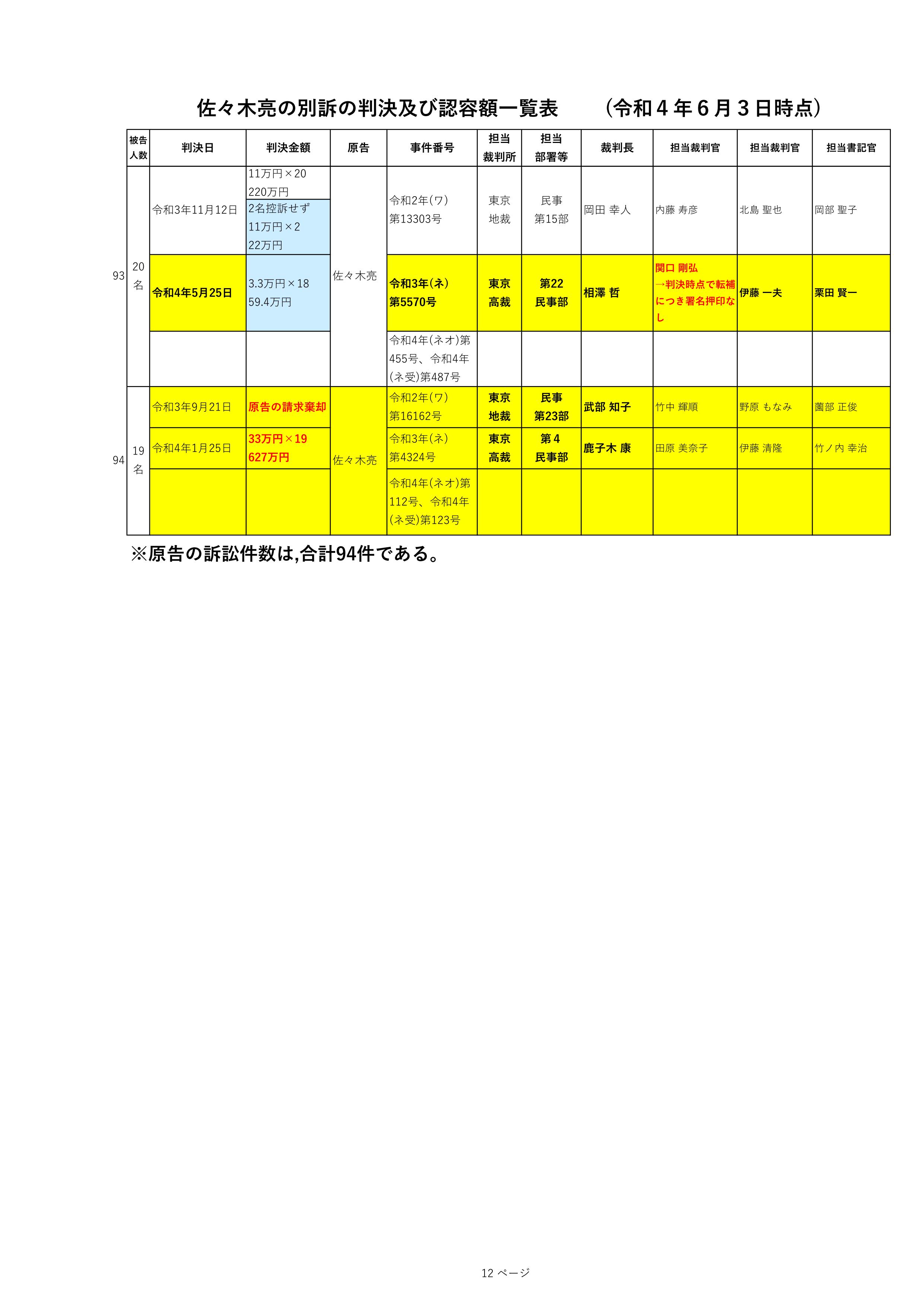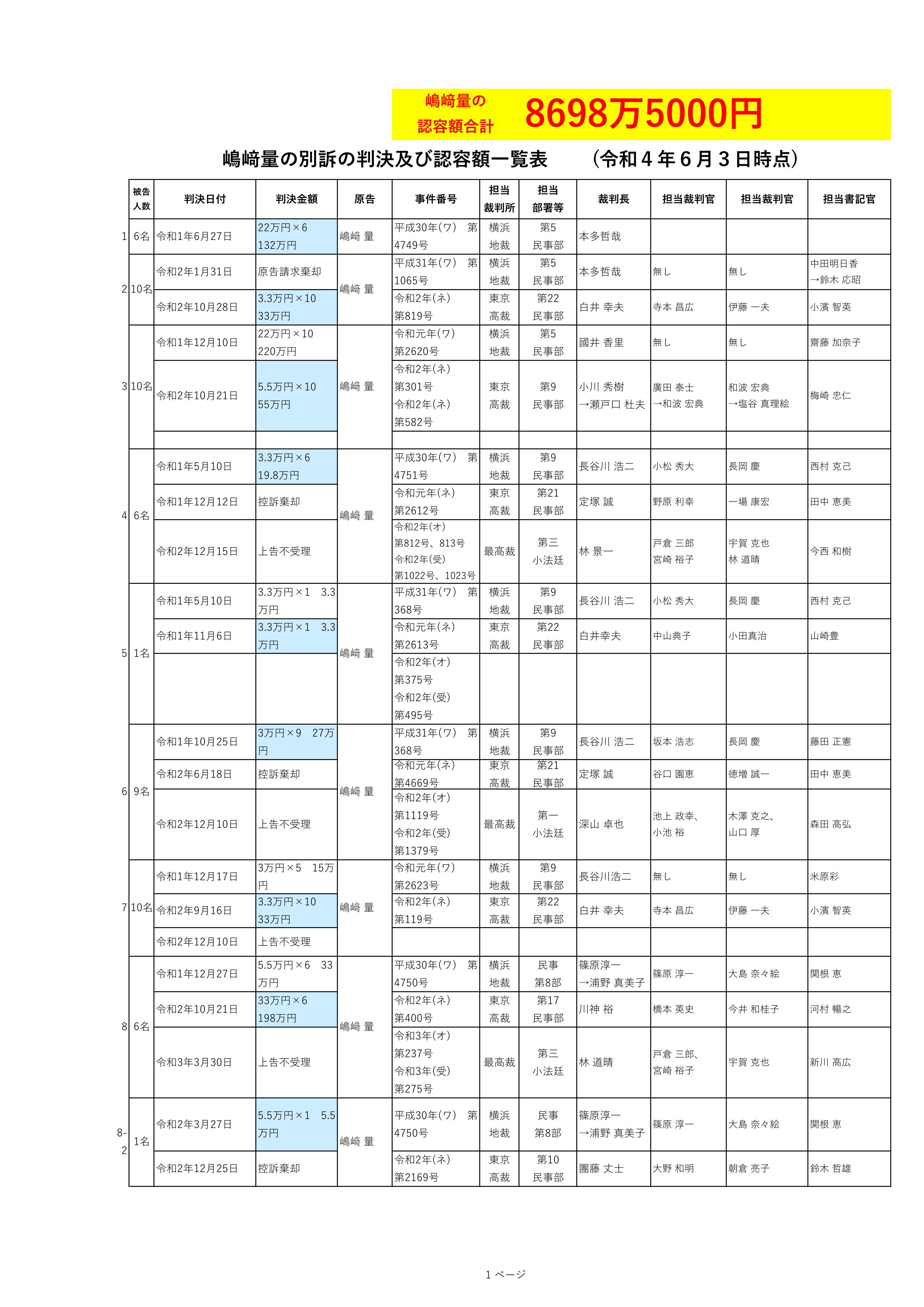 それでは、判決金額を網羅した、日本の司法の腐敗が一目瞭然のデータを一挙公開です。