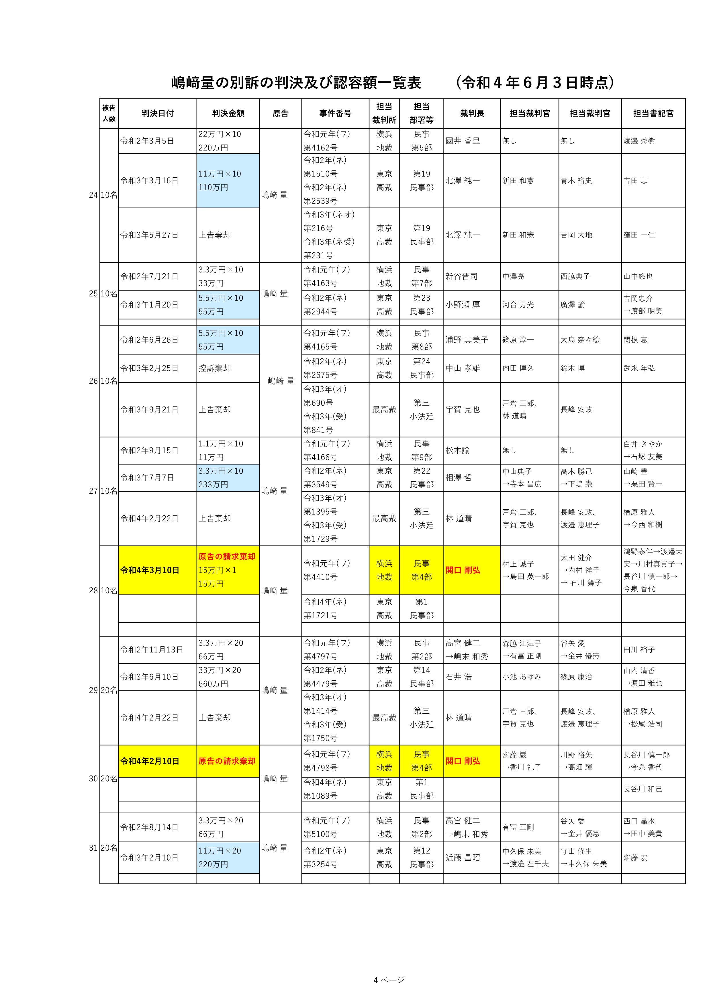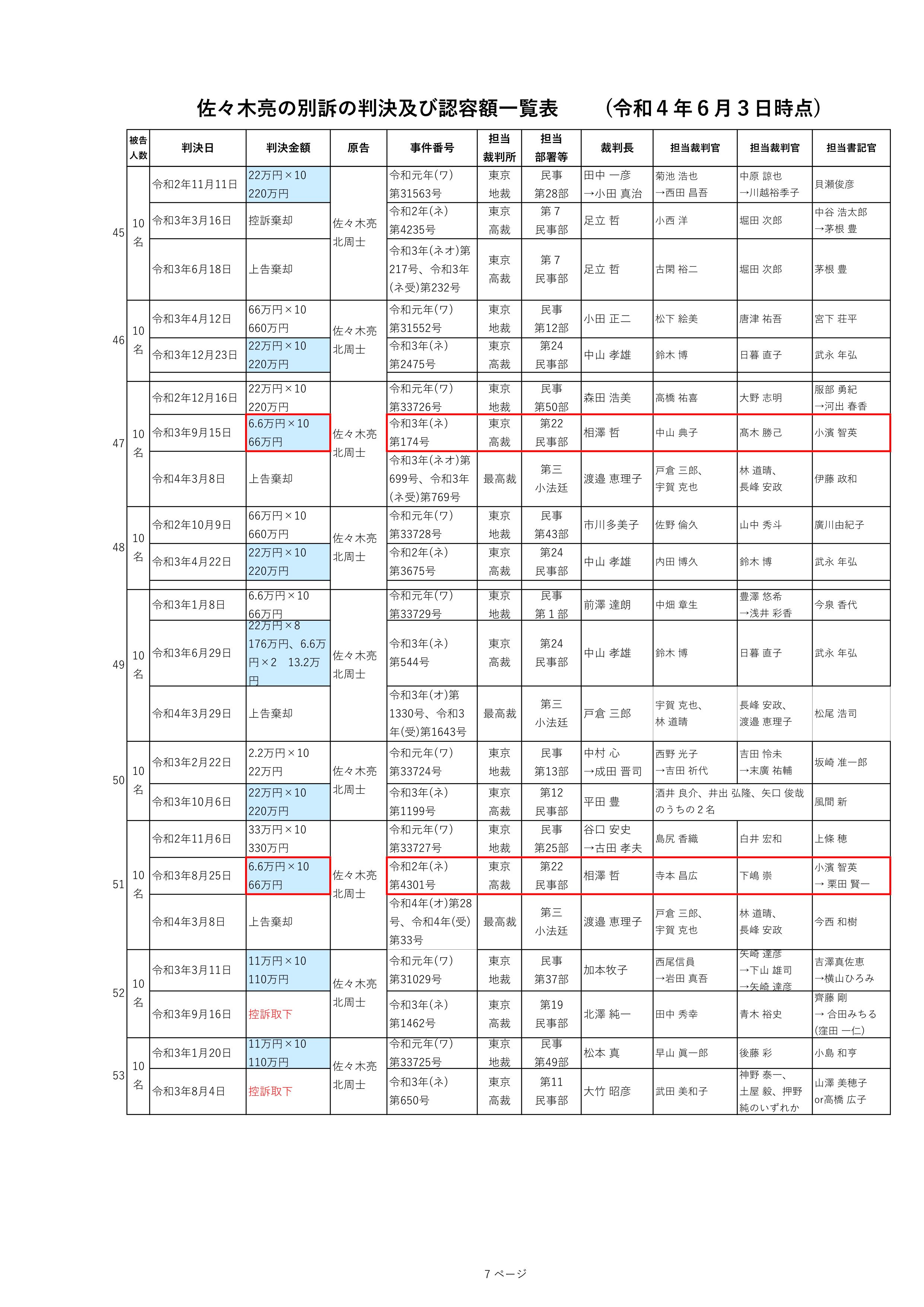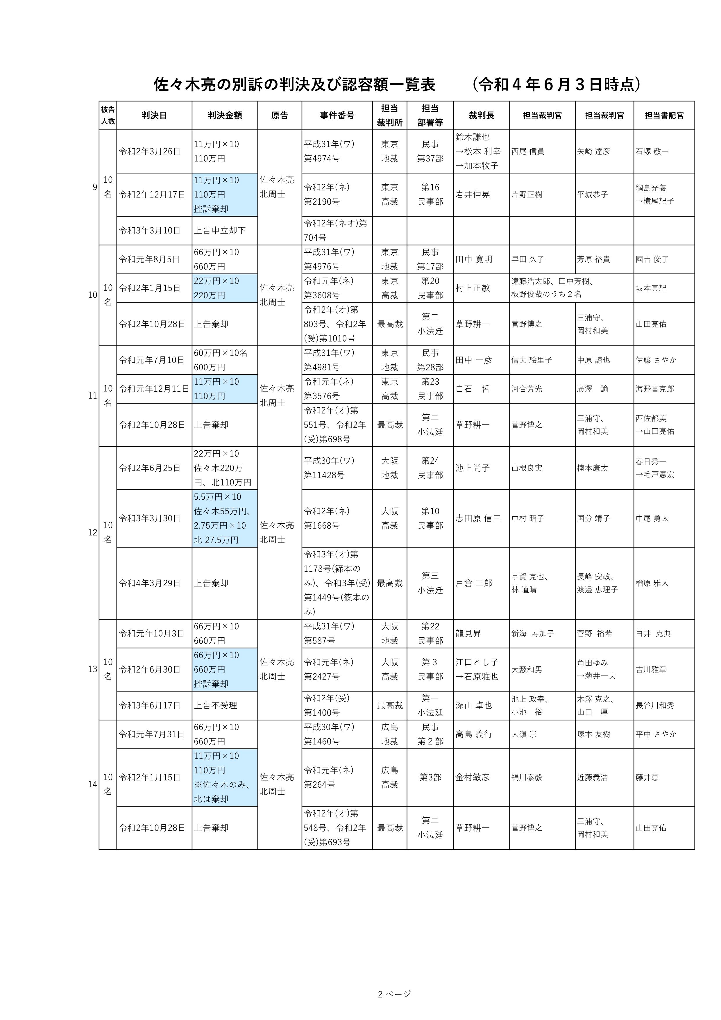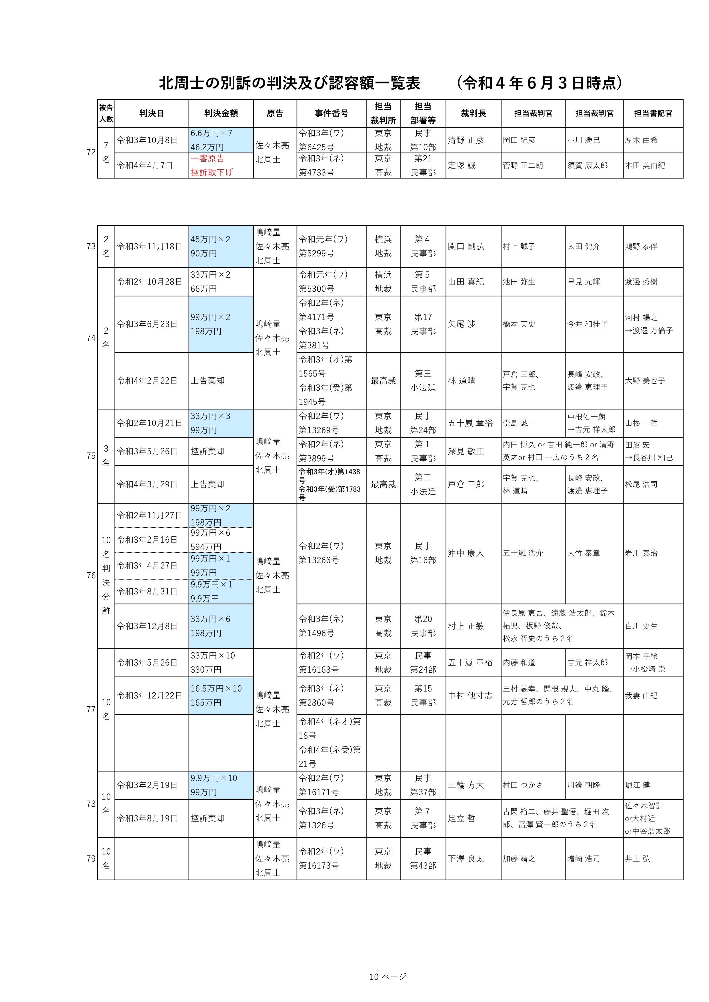 それでは、判決金額を網羅した、日本の司法の腐敗が一目瞭然のデータを一挙公開です。