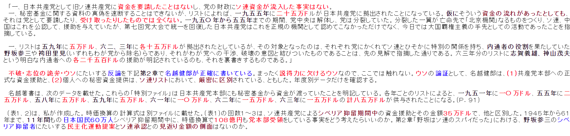 それを私たちも勉強する必要があるでしょう。日本共産党への外国からの資金援助を調査した著作と、それを否定し続ける共産党について資料をご紹介します。