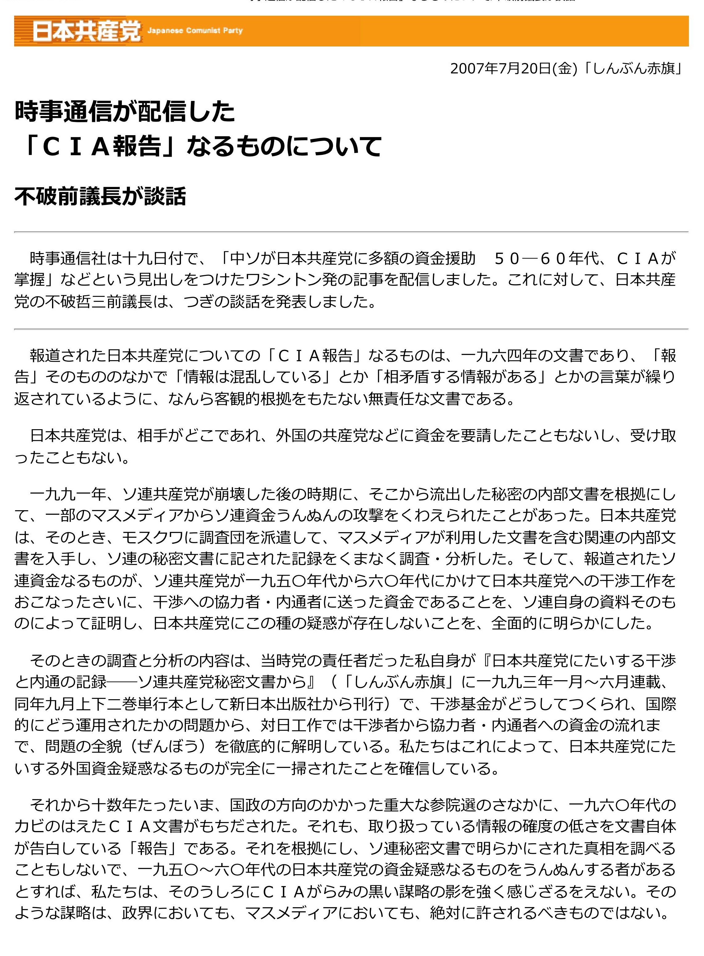 志位和夫のソ連資金流入否定談話