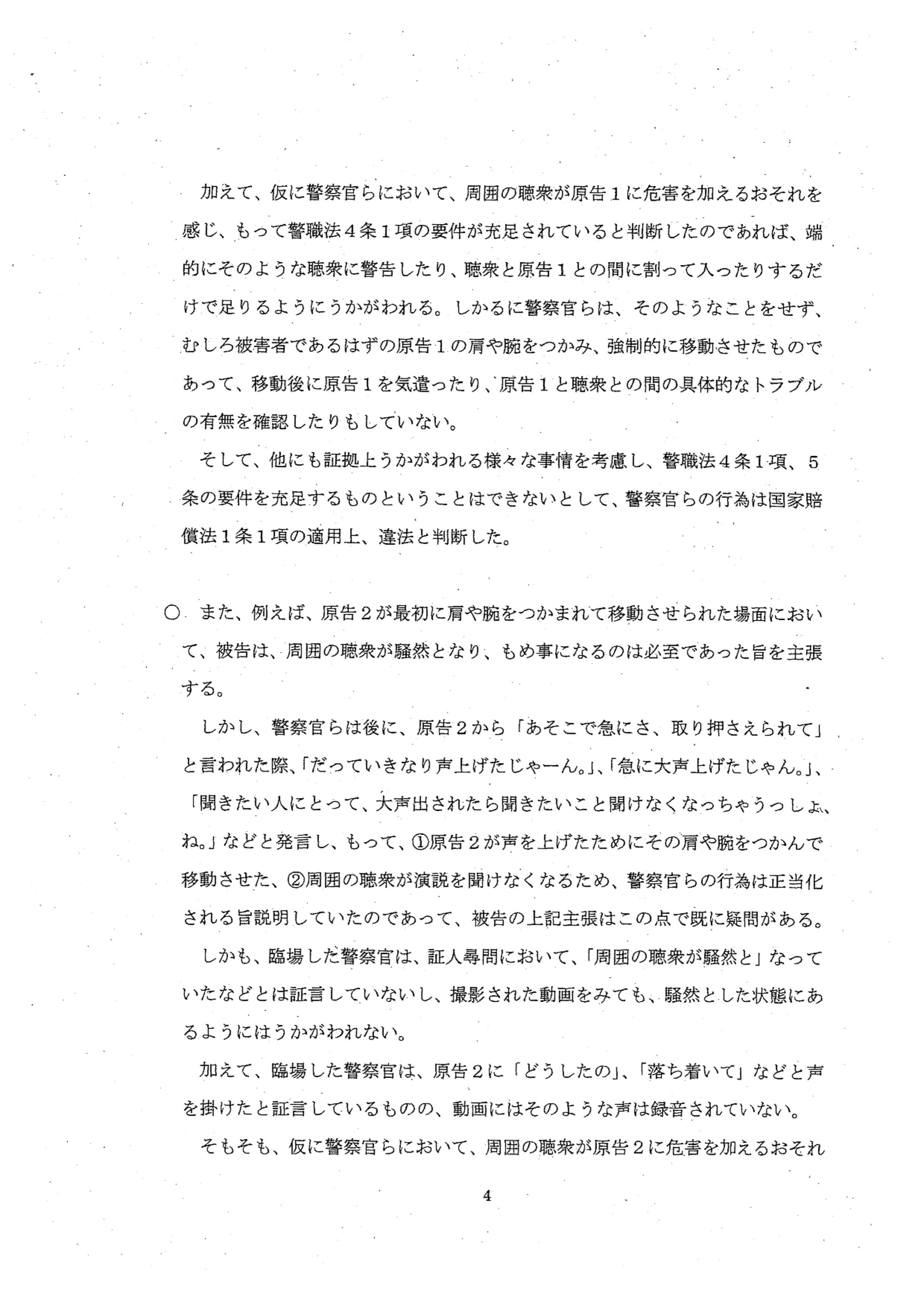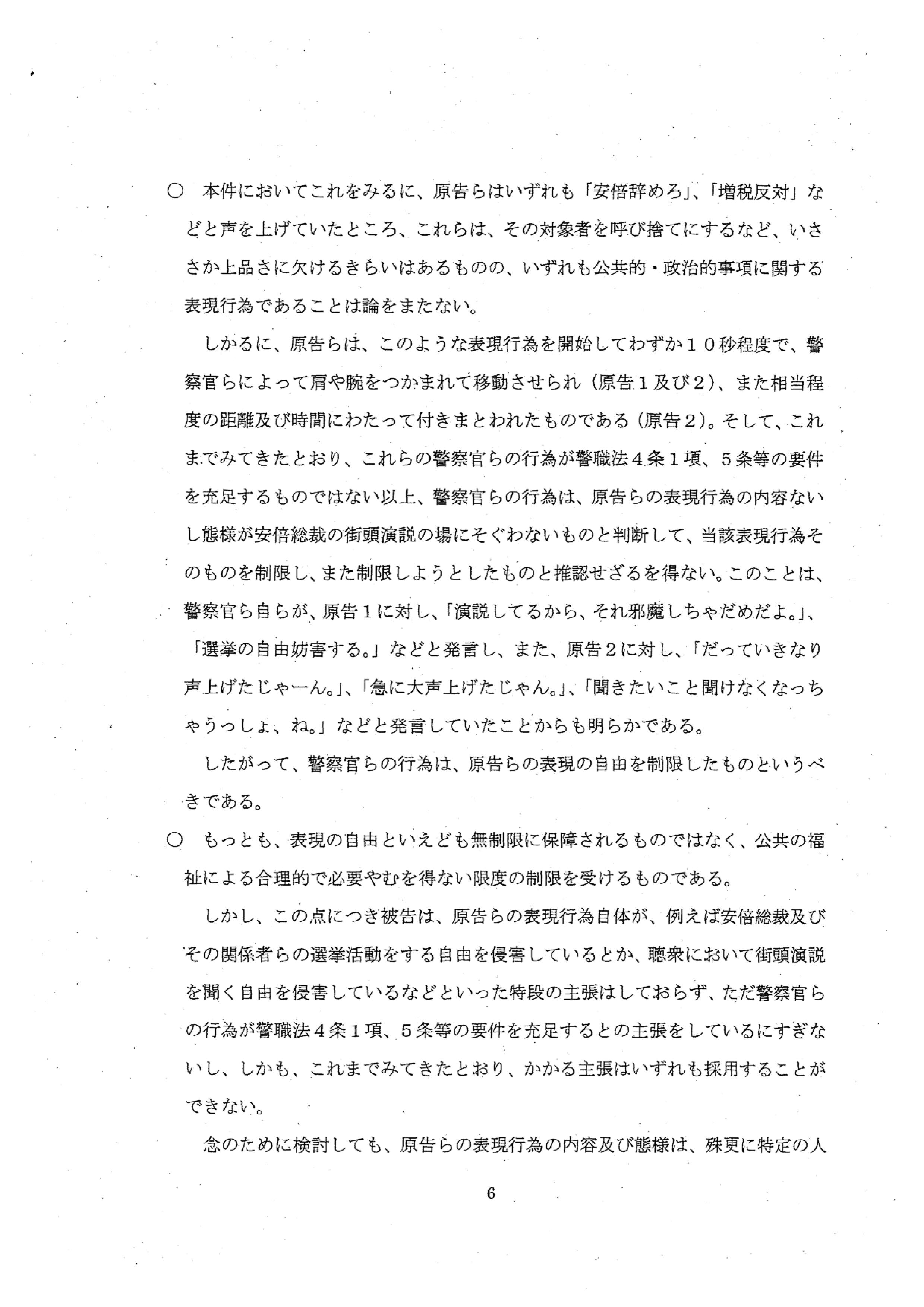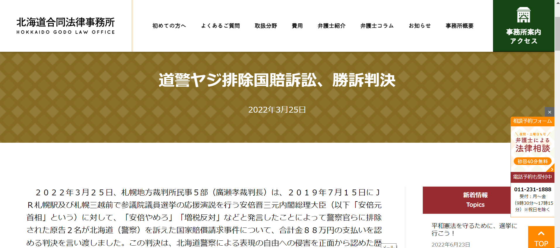 853 札幌地裁ヤジ排除違法判決要旨と弁護団声明