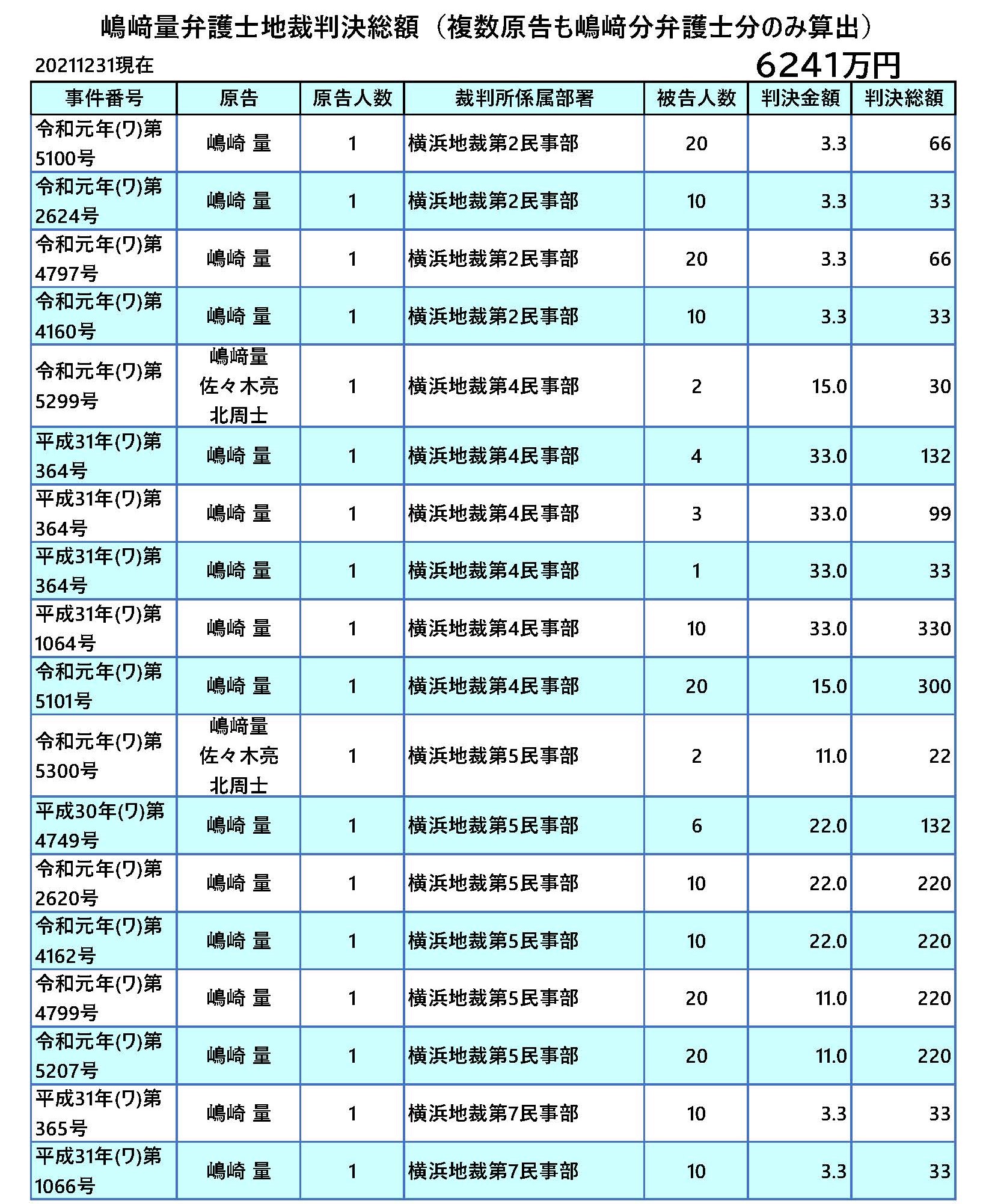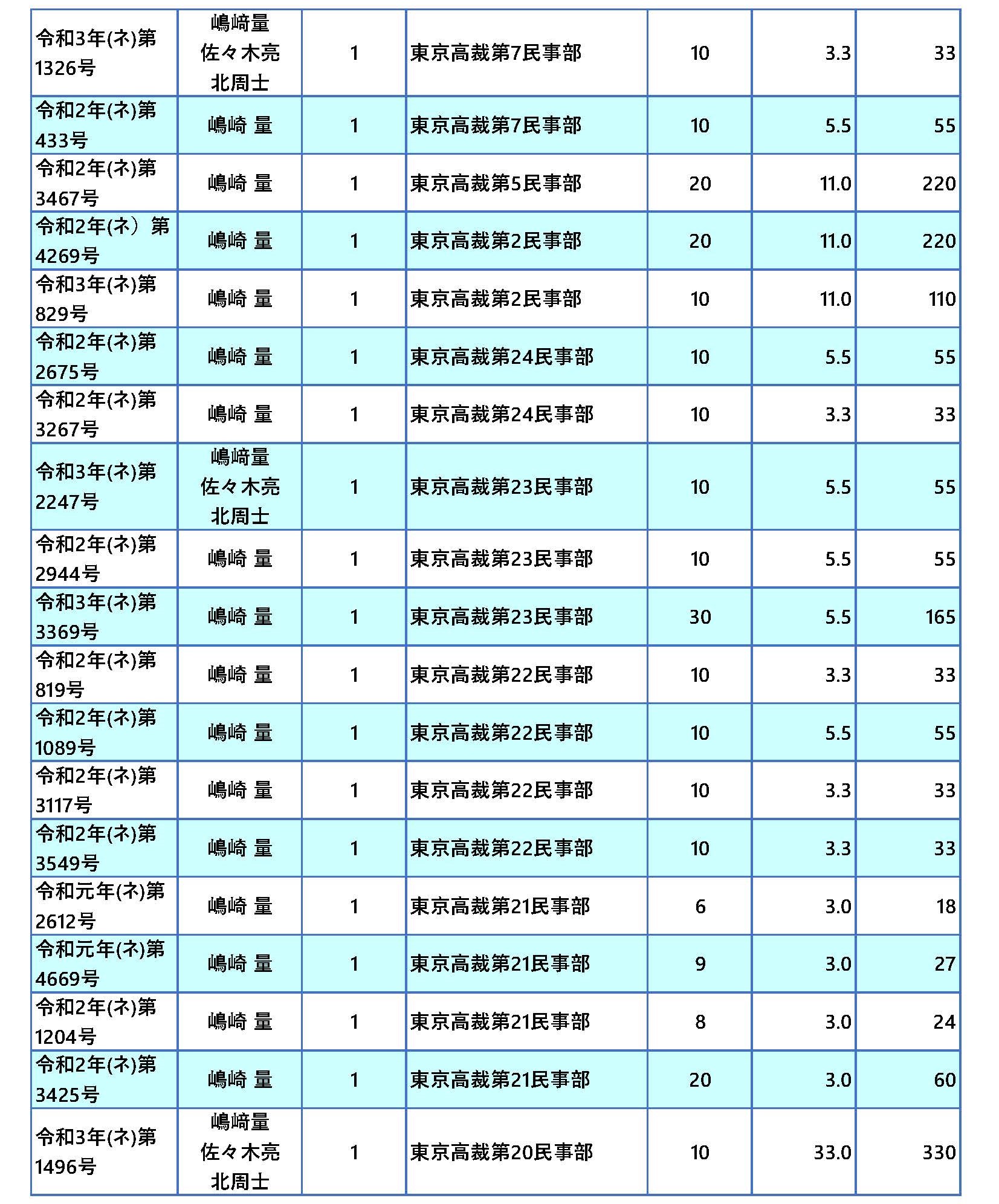 忘れる前に。金額少なめの反動で回収がきつい嶋﨑弁護士の判決一覧です。