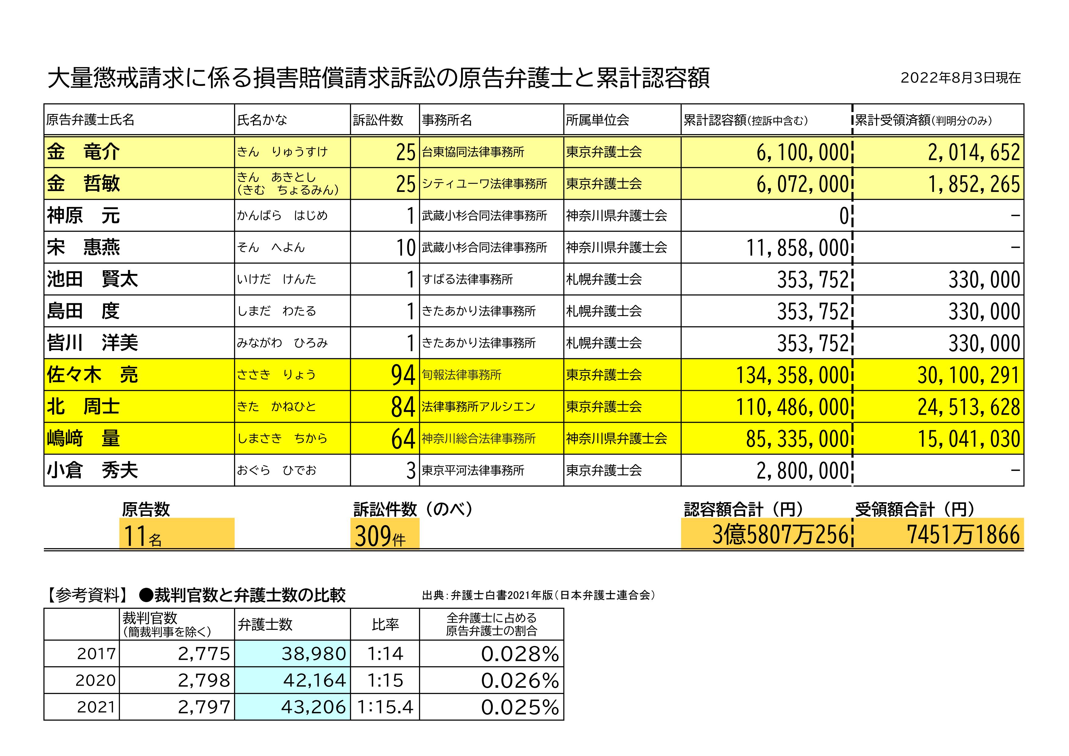 原告全11名の認容額合計:3億5800万円
