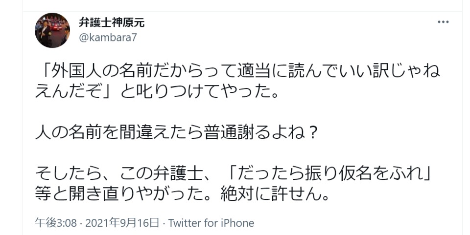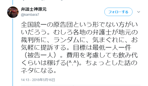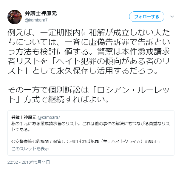 では、裁判所と裁判官の皆様に、神原元弁護士の正義ツイートをプレゼントしますね♡