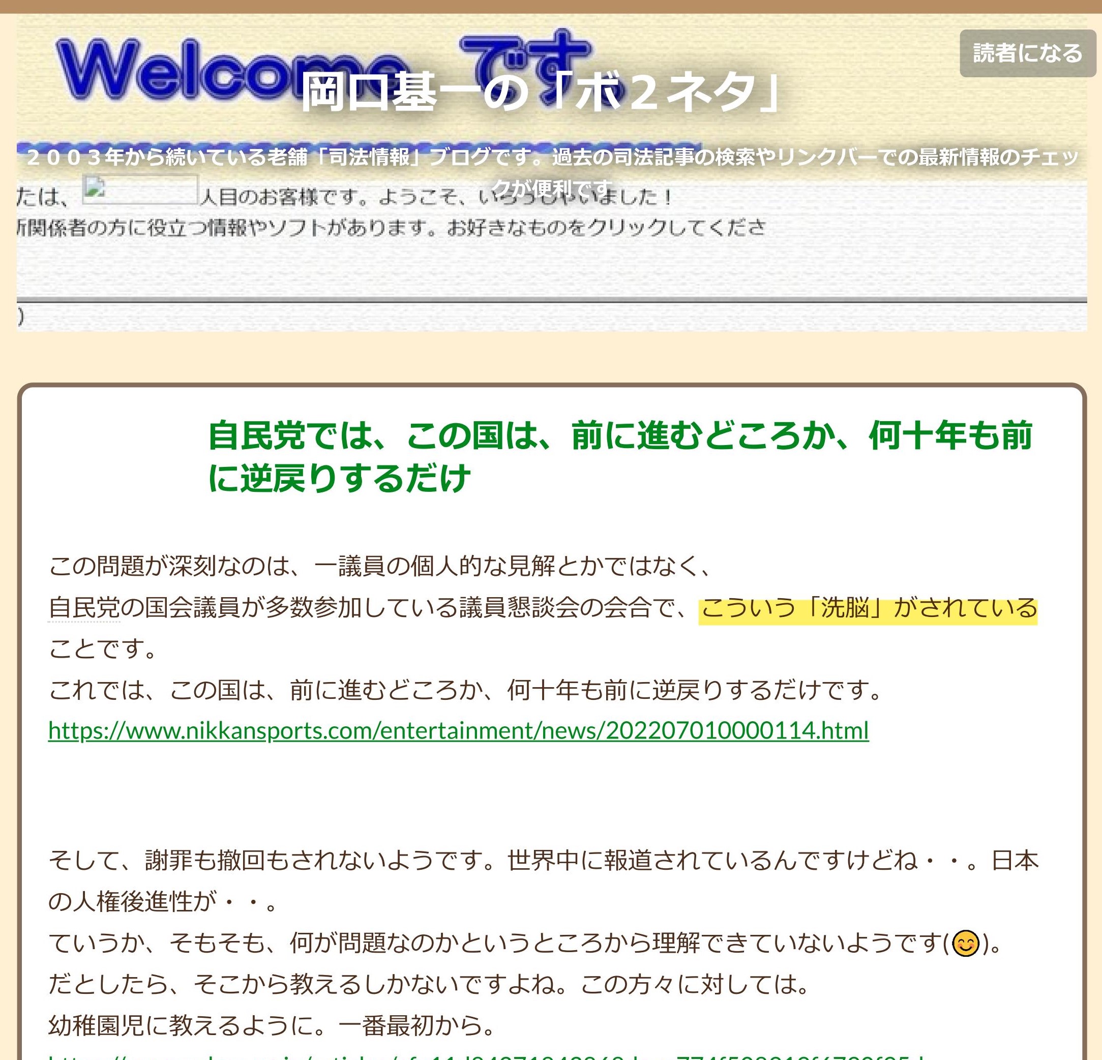 そうそう、このブログで使われた洗脳という言葉、訴追請求の原因ですので再掲します。