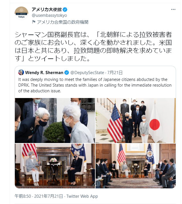 ちなみに、拉致問題の即時解決を願っているのは日本だけではありません。