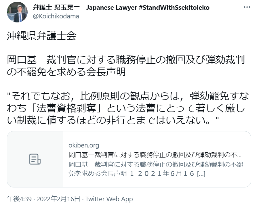 もはやノーコメントですが、今度は沖縄県弁護士会