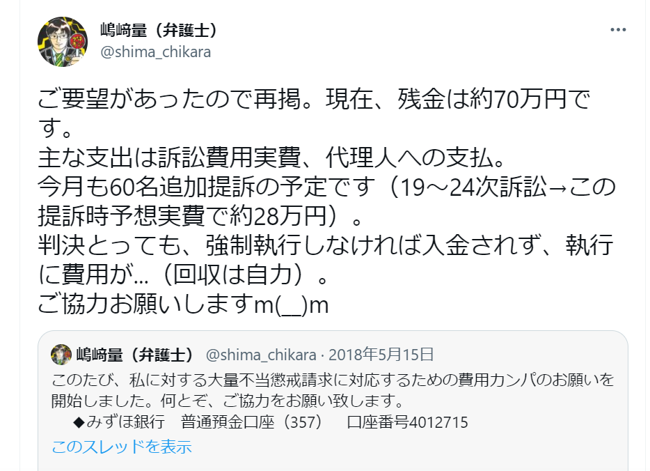 嶋﨑弁護士は嘘つきですね。ちょっとひどすぎませんか?