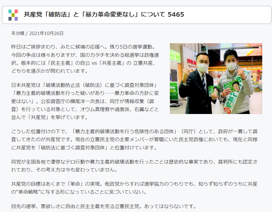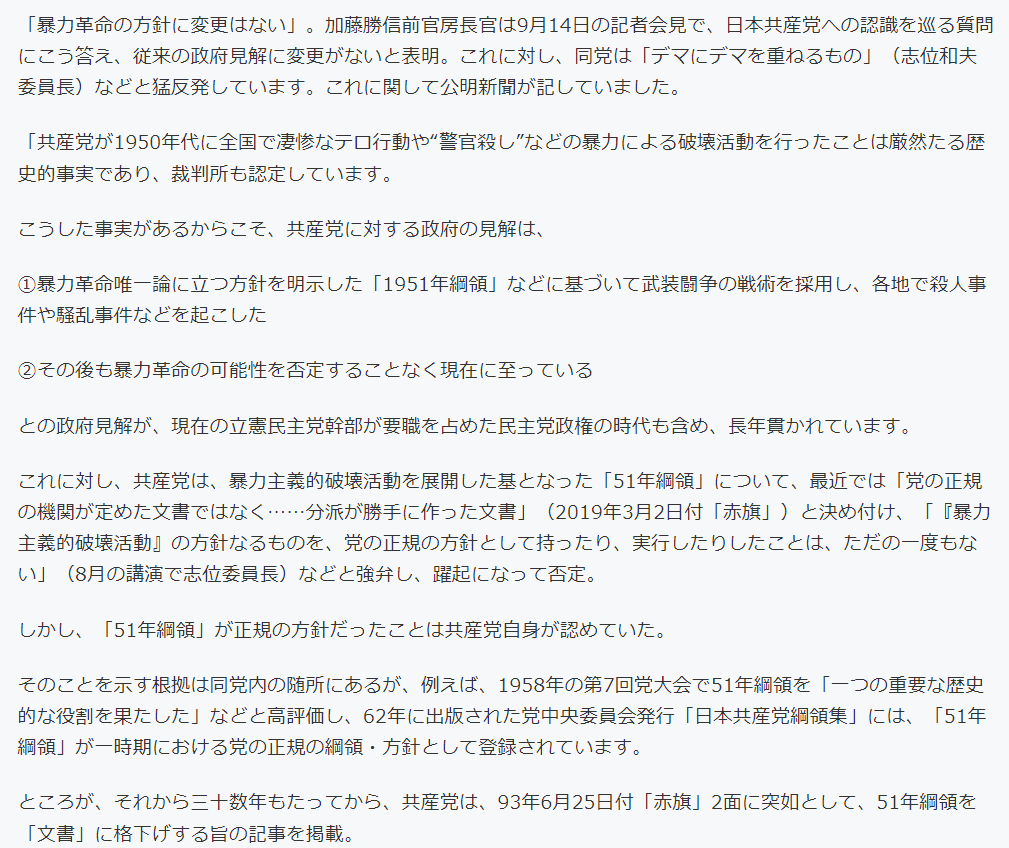 日本共産党は今も変わらず「破壊活動防止法(破防法)に基づく調査対象団体」です。