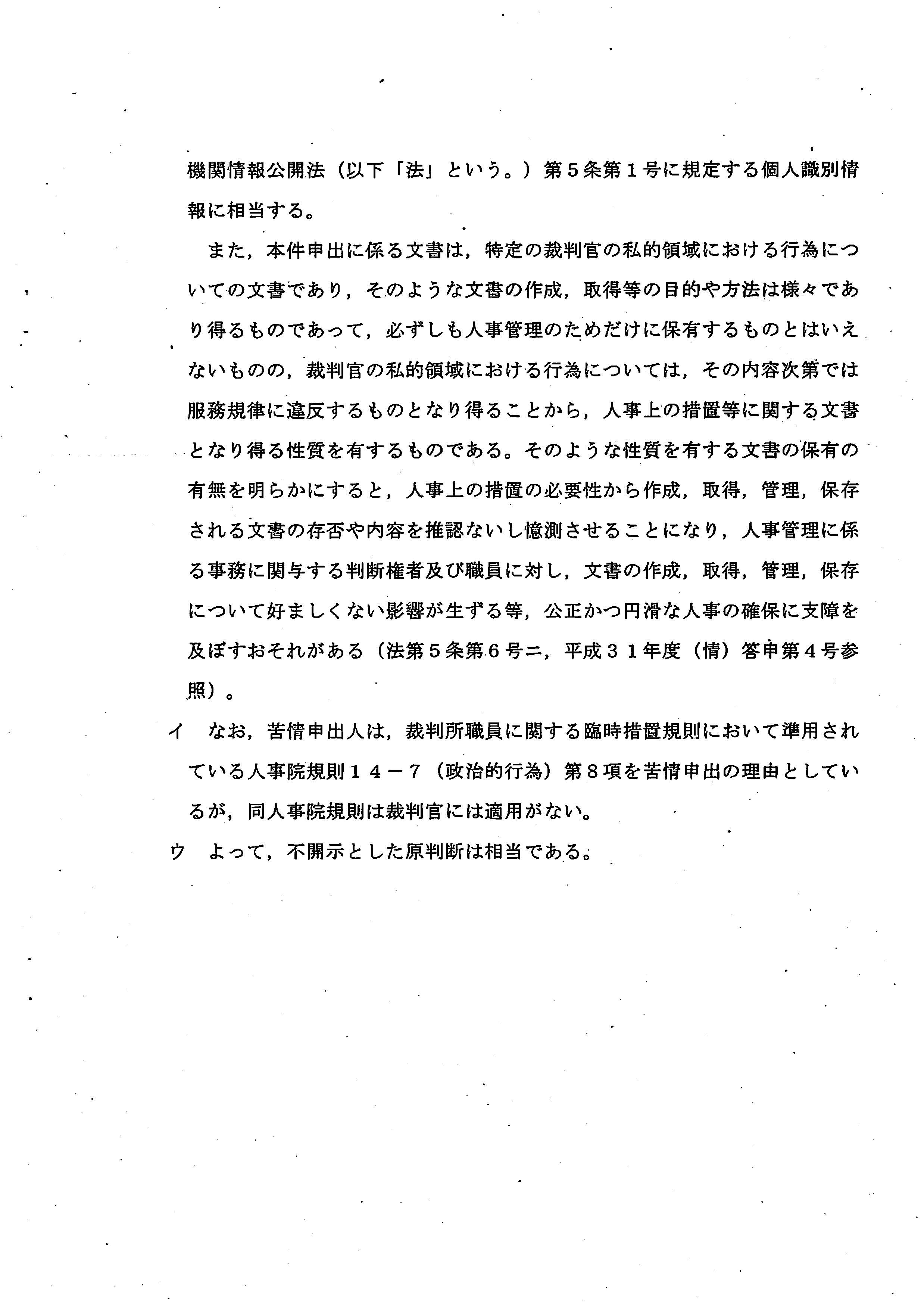 ということは、反天皇の活動を自由にさせる為に、最高裁判所が勤務時間外の活動を開示拒否したということになりますね。それとも、最高裁が判事の反天皇活動を隠すために、つまり裁判所の権威を守るために不開示にしたのかな?