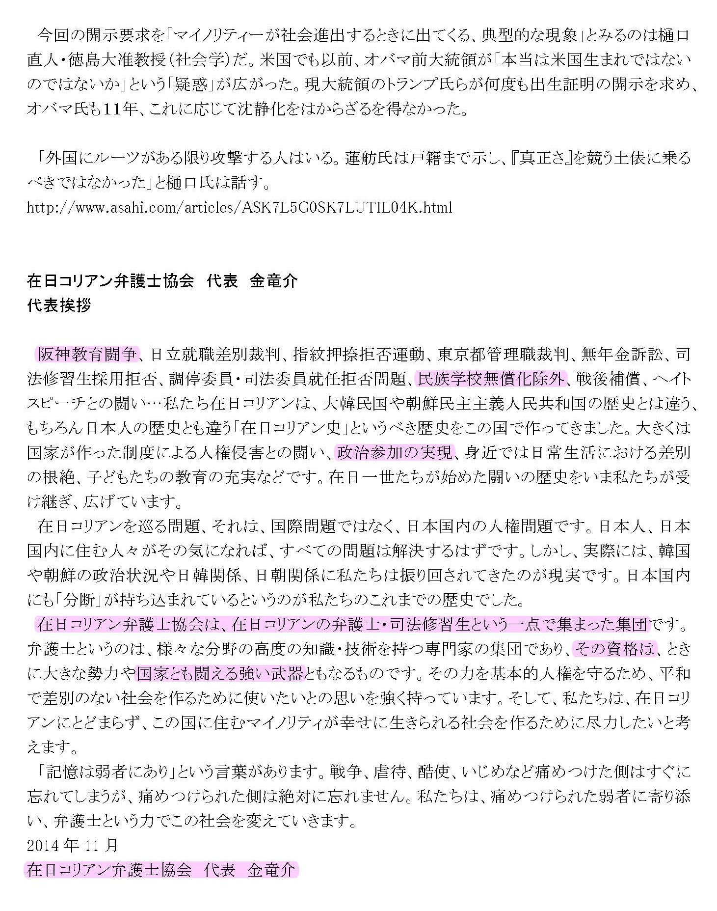金竜介氏は在日コリアン弁護士協会代表 2014年度 2017年度
