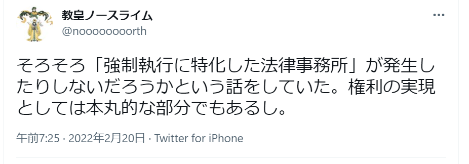 それではお金が沢山もらえてうれしいノースライム先生のツイートを見てみましょう。