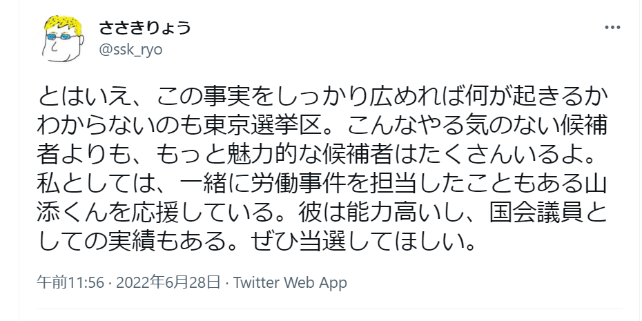 裁判官訴追委員(前)の山添拓参議院議員を。