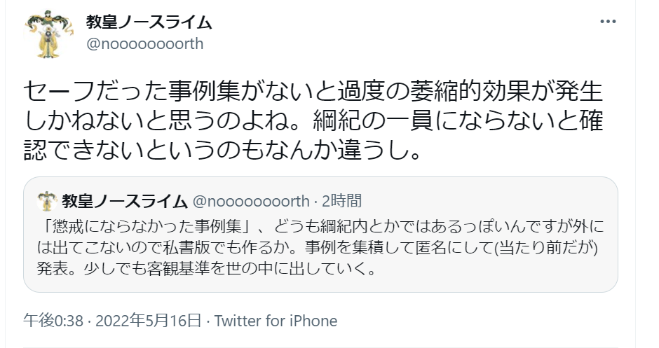 ノースライム弁護士、懲戒専門家を自認し始めたご様子。