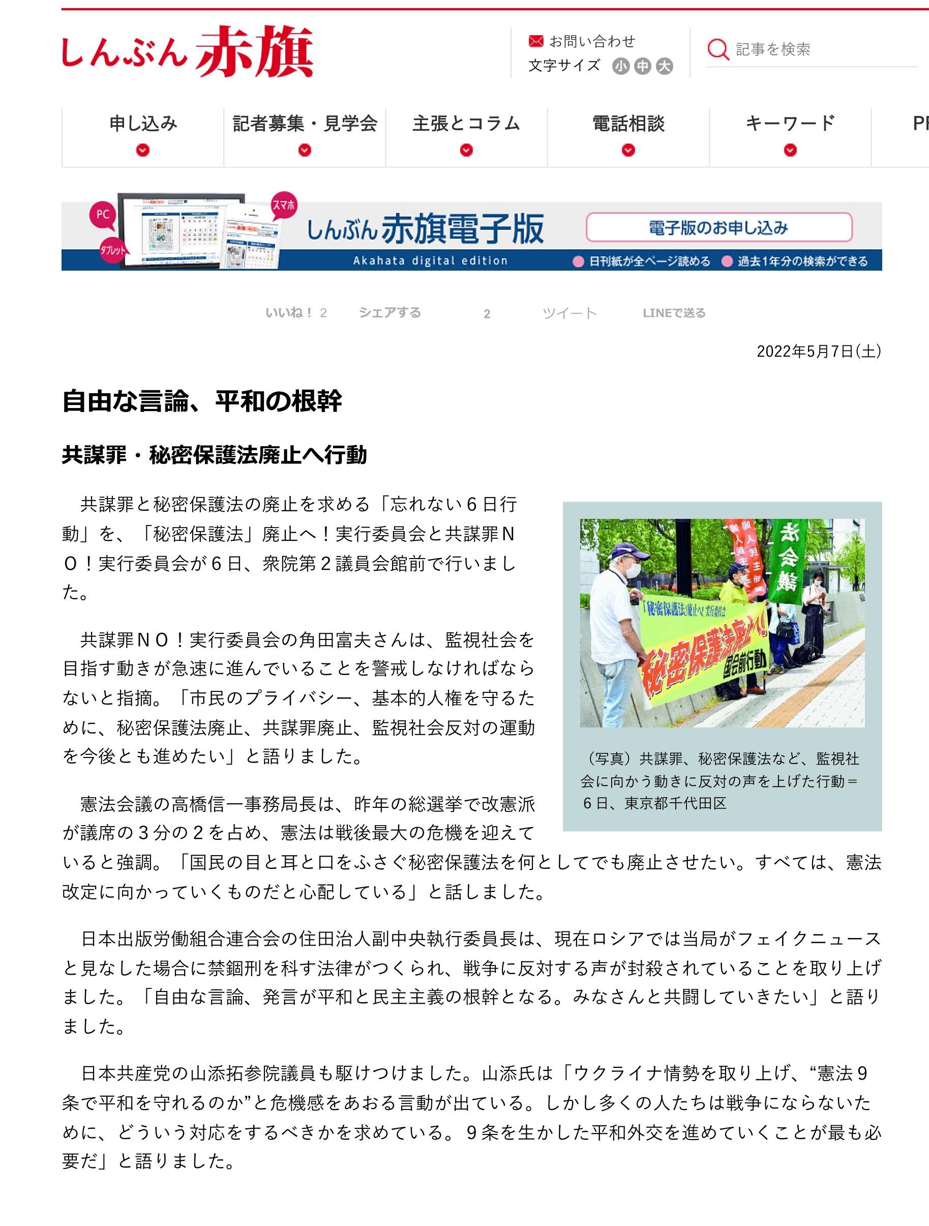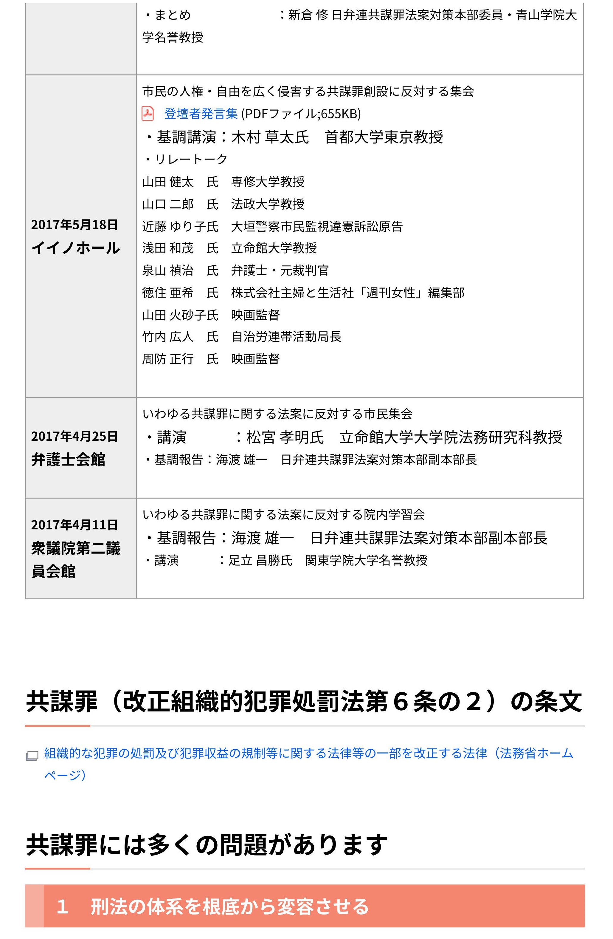 あー、それから福島瑞穂議員とセットの海渡雄一弁護士、立正佼成会の佼成新聞で「共謀罪糾弾」をしています。統一教会はダメで、立正佼成会はいいの?久保木某という統一教会の問題人物は、立正佼成会のご出身ですよね。