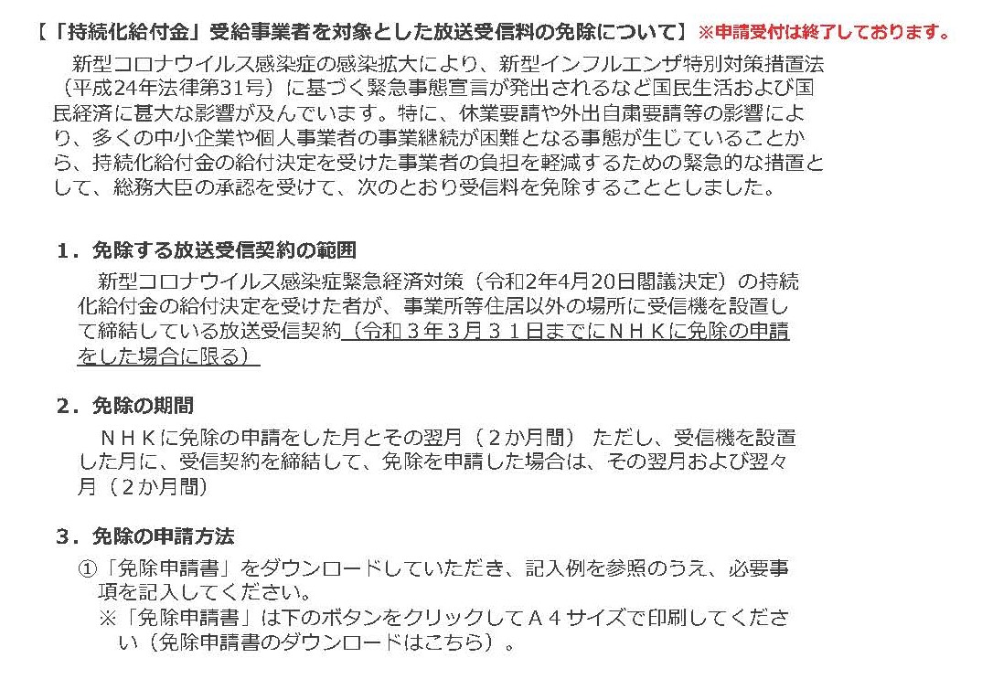 そして何と、あの天下のNHKが国から130万円も支給された持続化給付金受給者を対象に、申請があれば「受信料を2ヶ月分免除」していたのです。