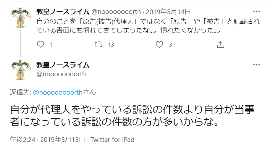 ついでに懲戒ビジネスの自白、代理人よりも自分の訴訟の方が多い…