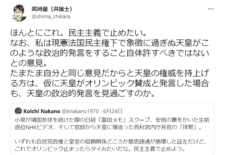 ブラック嶋﨑先生、反天皇と北朝鮮シンパで飛ばします