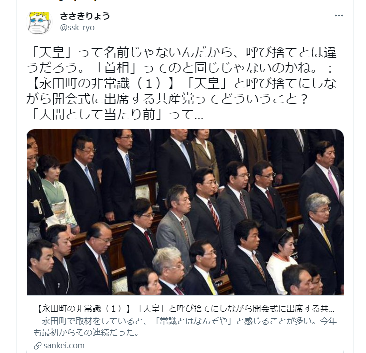 真打は共産党に育まれた感性爆発、ゴリゴリ反天皇ブラック佐々木先生