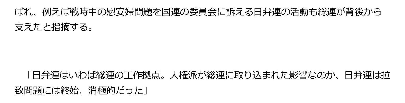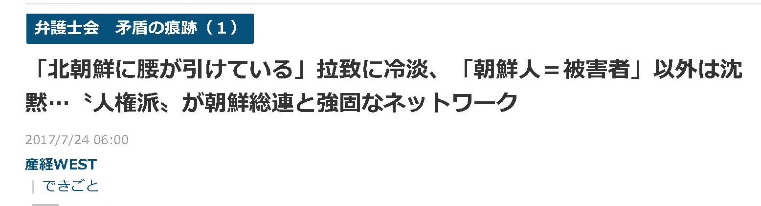 「日弁連はいわば総連の工作拠点。人権派が総連に取り込まれた影響なのか、日弁連は拉致問題には終始、消極的だった」