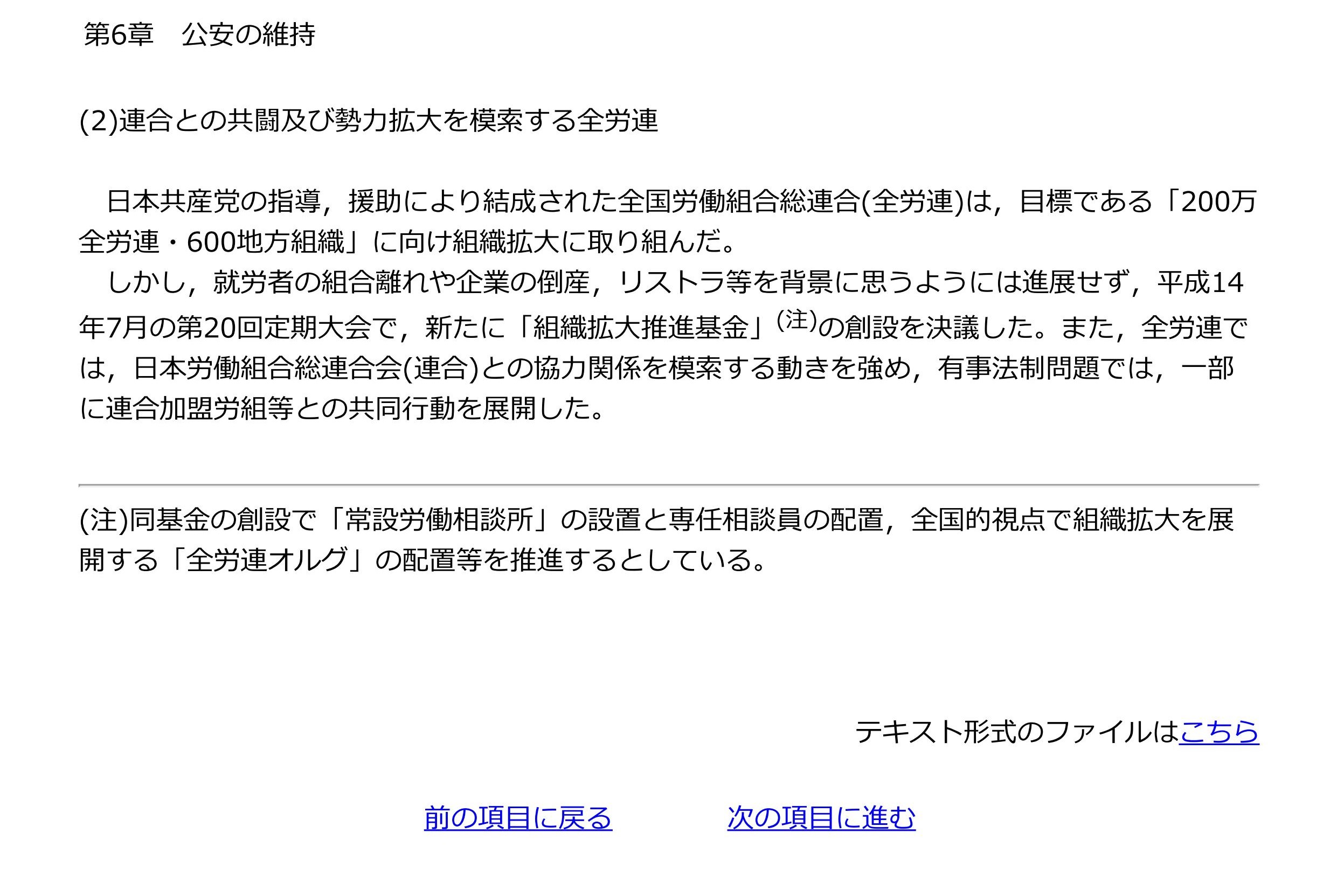 ちょっと公安の全労連についての見解をおさらいしますよー。なになに、公安の維持とな。
