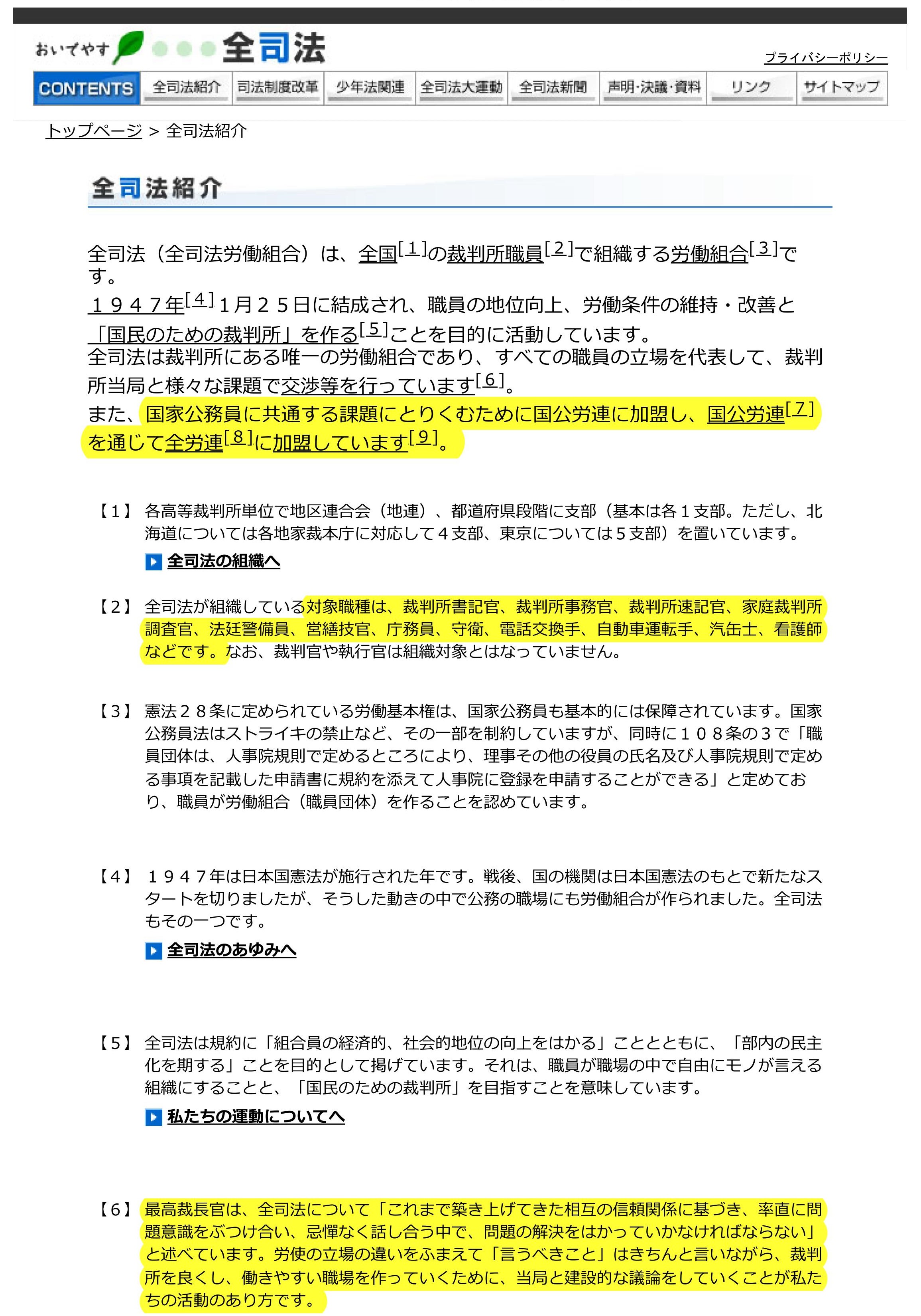 ほお、ほお、そして全司法労働組合のリンクを見ると、法曹三者を網羅とな。