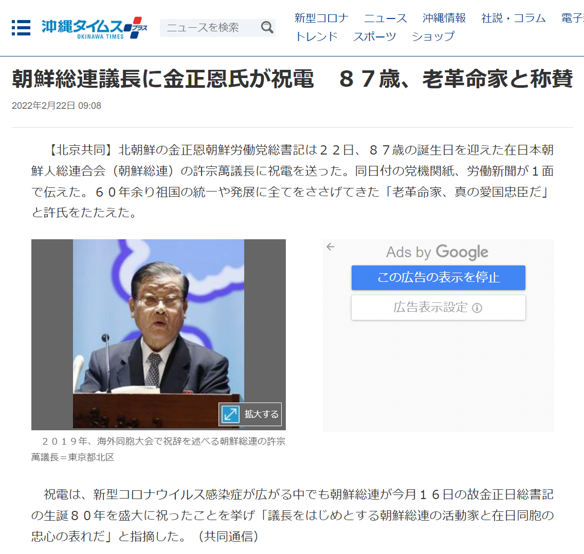 北朝鮮ととっても仲良し朝鮮総連の許宗萬議長