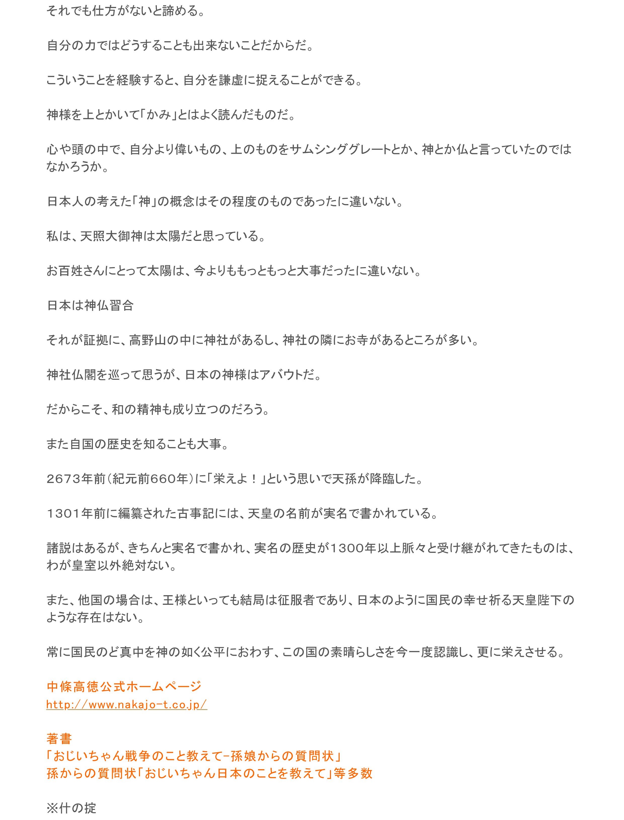「歴史に学び、国を愛し、徳に生きる」 中條高徳 アサヒビール株式会社 名誉顧問