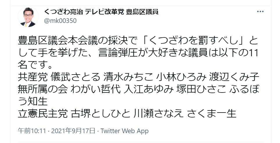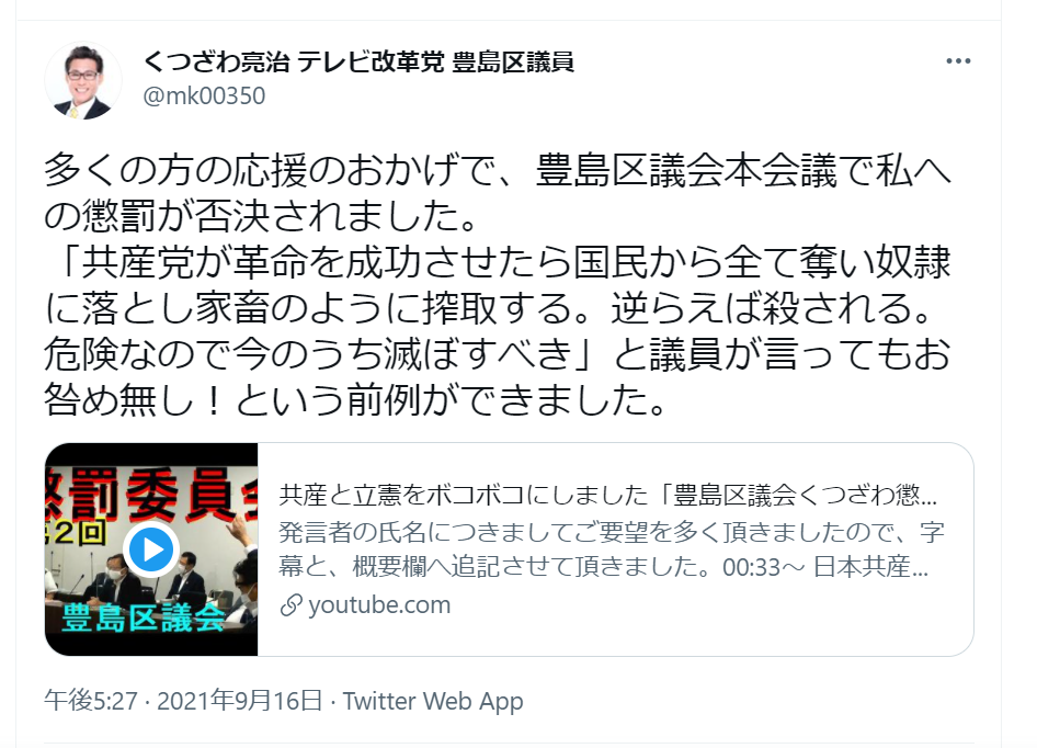 さらには沓沢区議からの追撃も発信されて、そこはかとなく共産党包囲網を感じさせる秋の気配がしたりしなかったり。