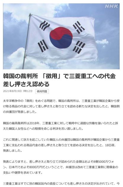 NHKはぼかしていますが、韓国のハンギョレ新聞はすでに三菱重工へ支払われるはずの現金を押さえたと報道しています。韓国の新聞より韓国にやさしいNHK!!!!