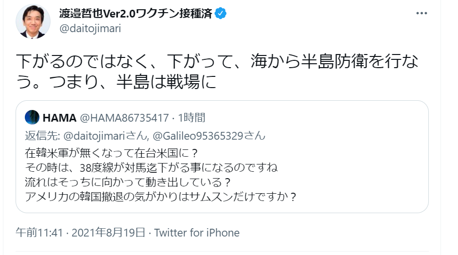 そして、米中対立が深まりアフガン撤退で世界情勢が混迷を深める中で、朝鮮半島内での有事発生の確立も極めて高くなっています。国際情勢の分析に優れ、不用意な発言をなさらない渡邉哲也さんのツイートを記事の最後にご紹介します。このツイートが指摘する客観的事実が意味するところを、よく考える必要があるでしょう。