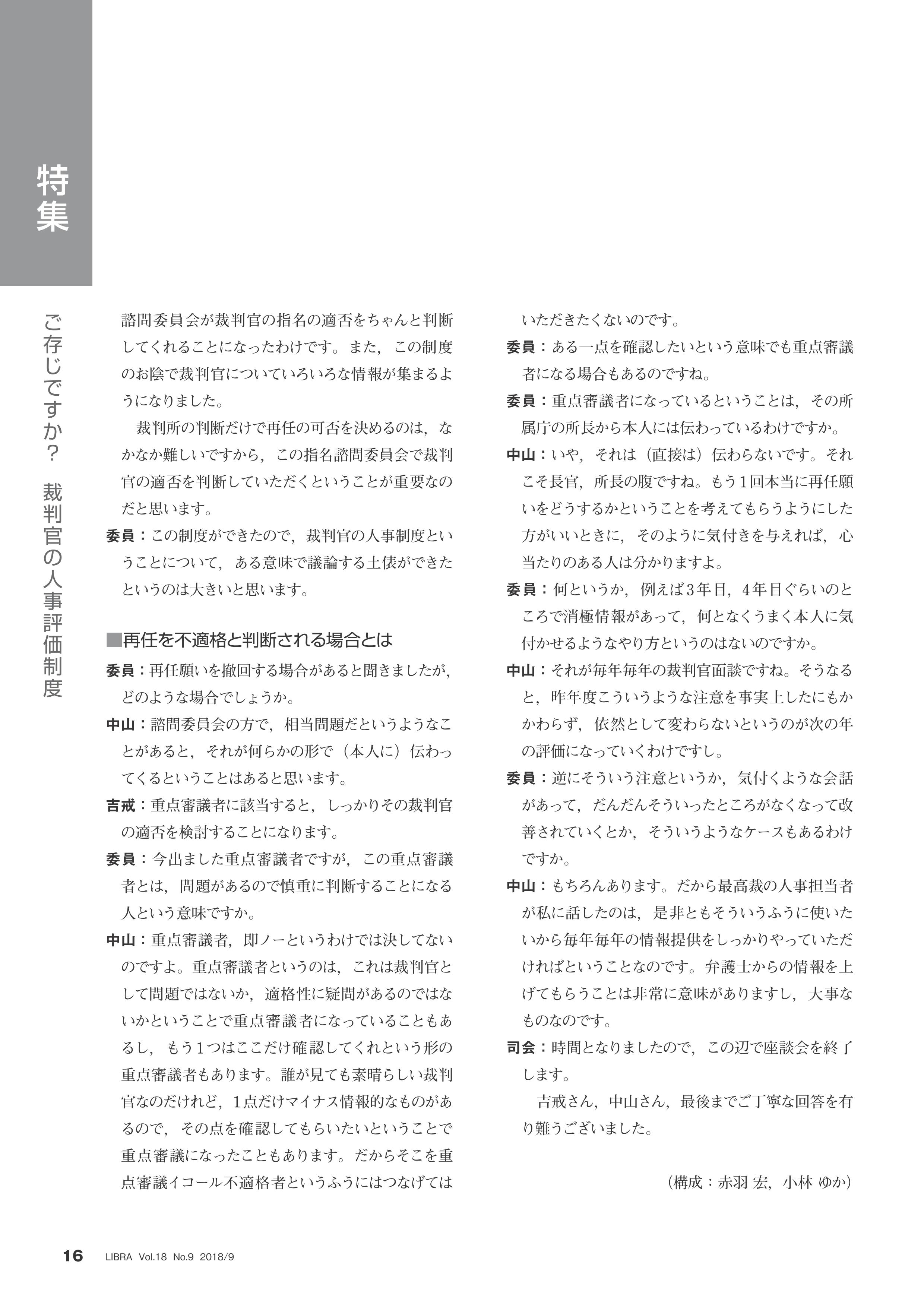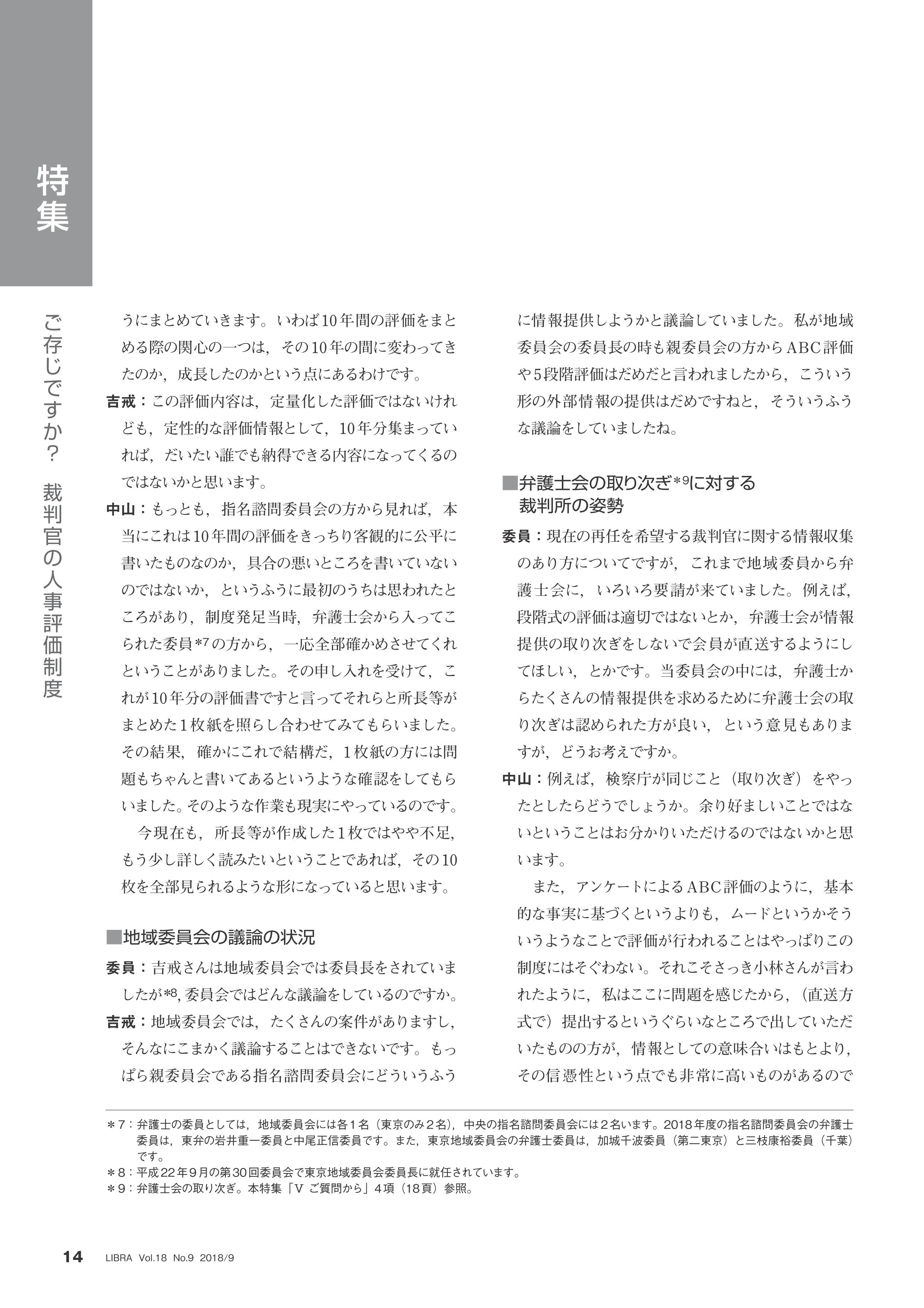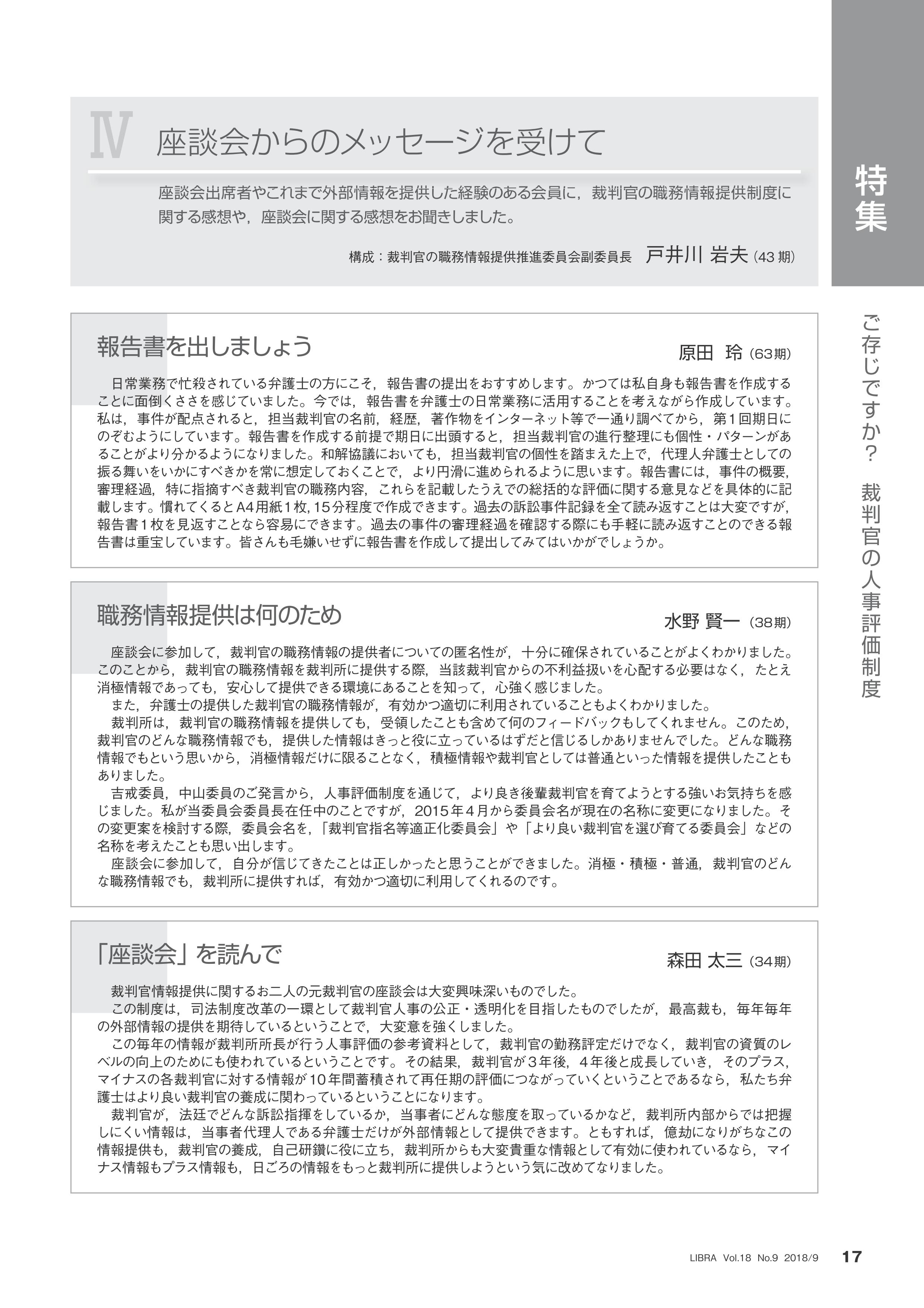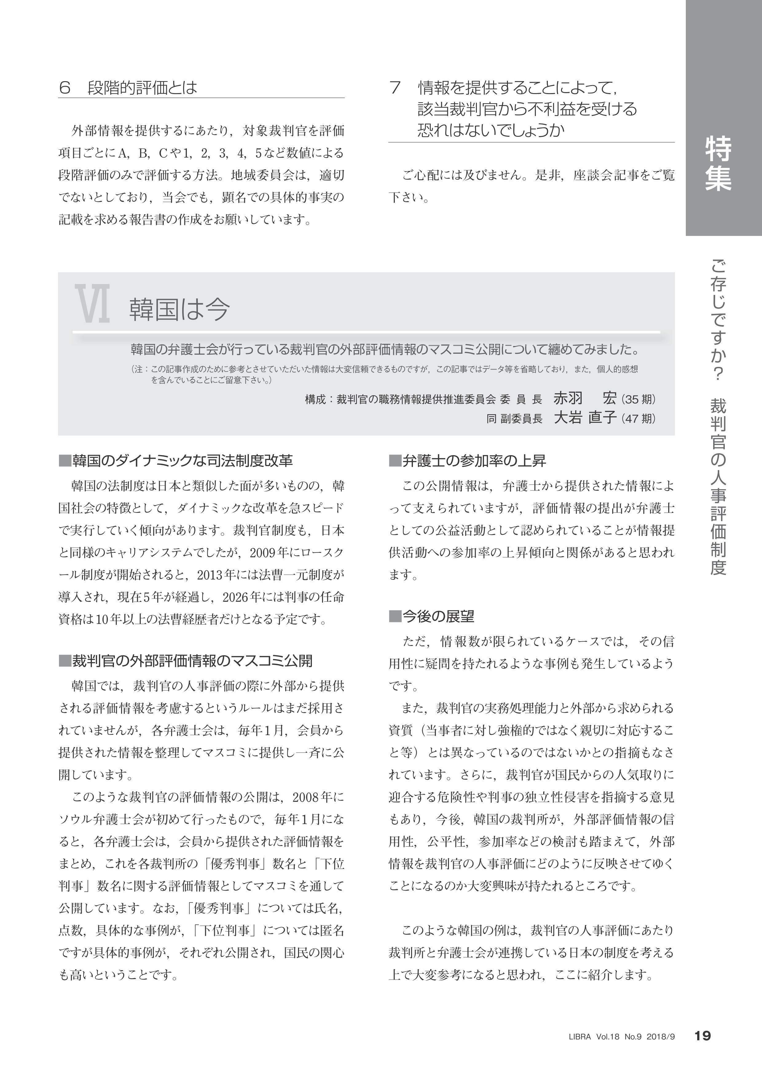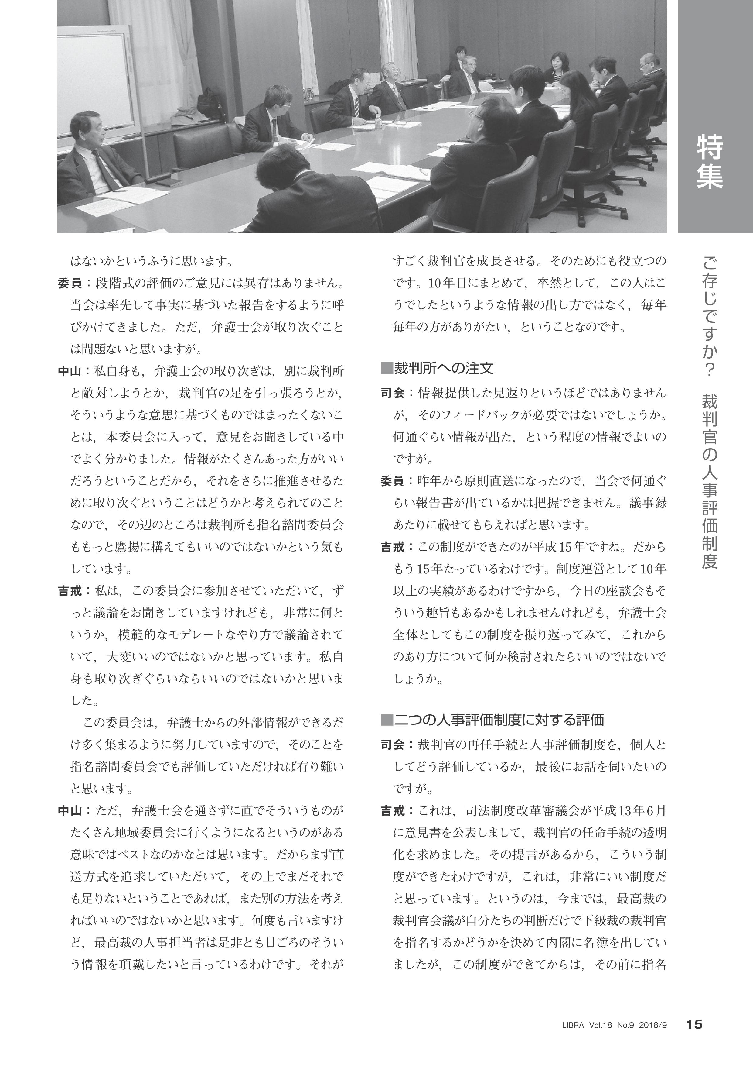 それでは、東京弁護士会会報誌から、裁判官の人事評価制度特集です。