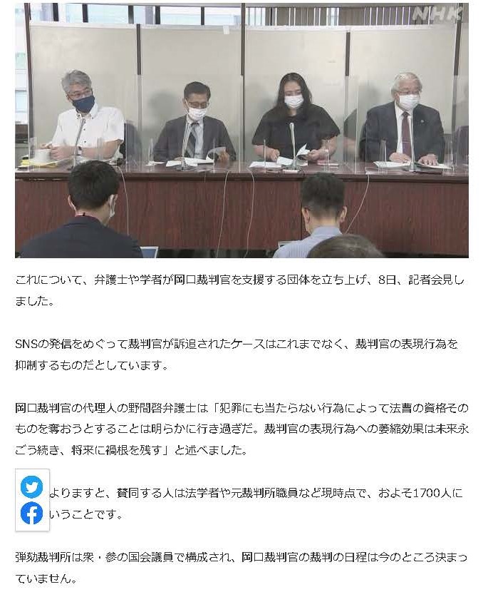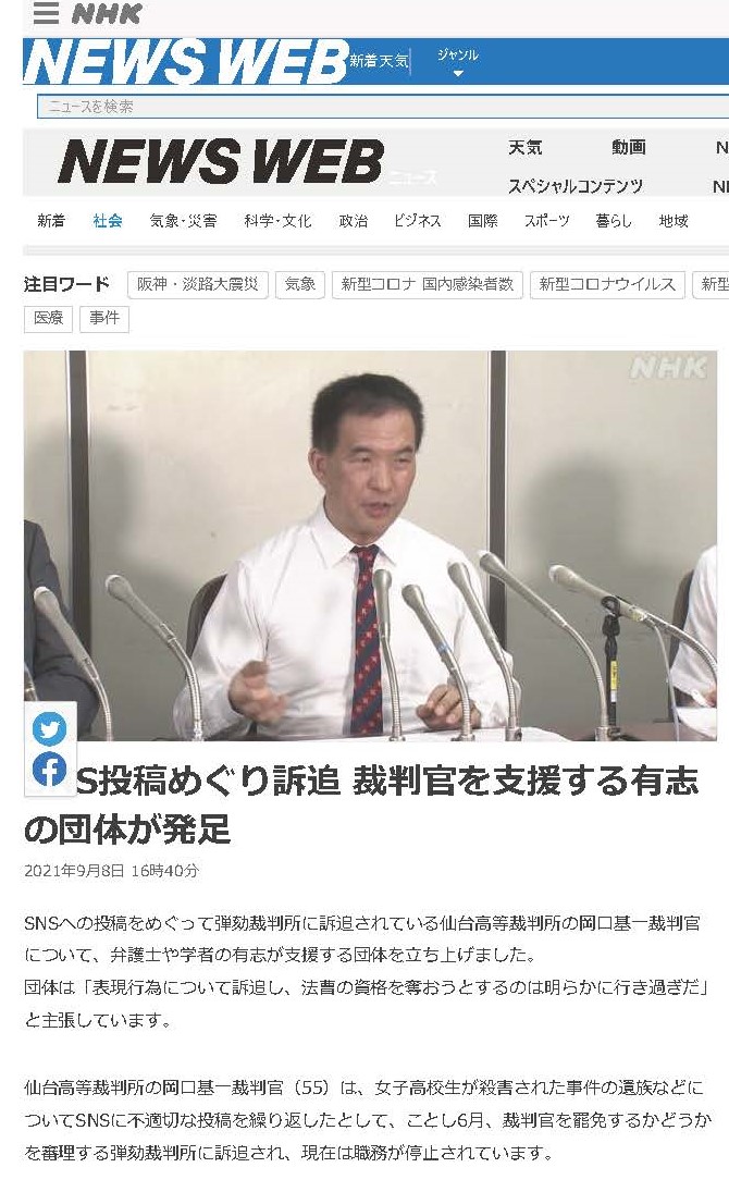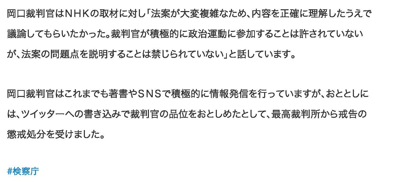 NHKは、地方の民放ラジオに出演して「まともな法治国家とは言えない」と、口を極めて政府を批判した岡口裁判官についてわざわざ報道しました。