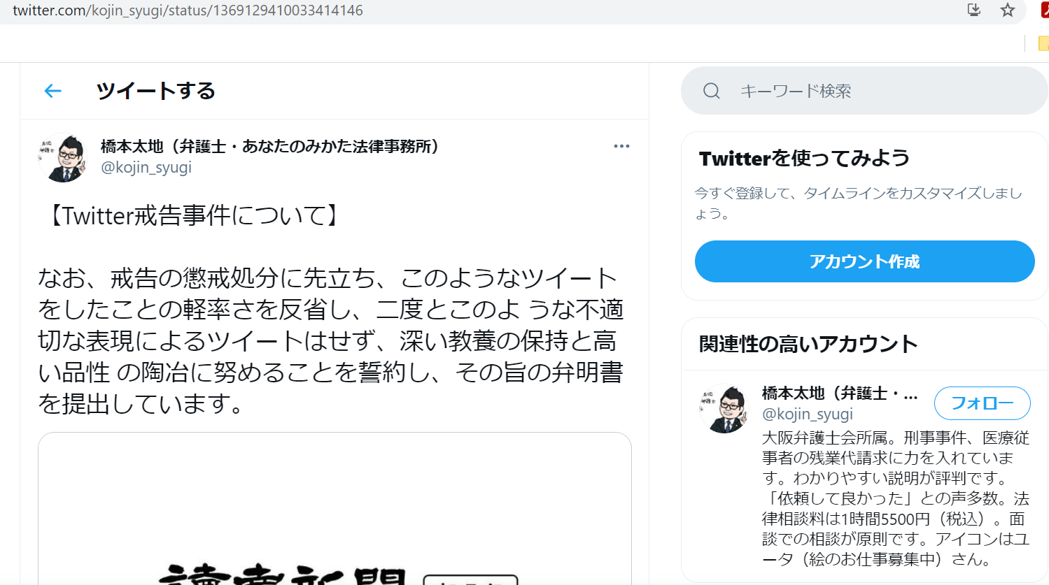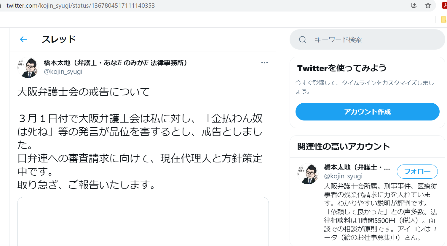 守りたい界隈では、やれ異例の処分だとか、不当な訴追だとか、法曹資格を失うのは比例原則に反するとか、要するに言いたいこと言わせろ、誰が不快になっても傷ついても、俺たち特別な法曹人の言論の自由だから関係ない!という主張のようです。