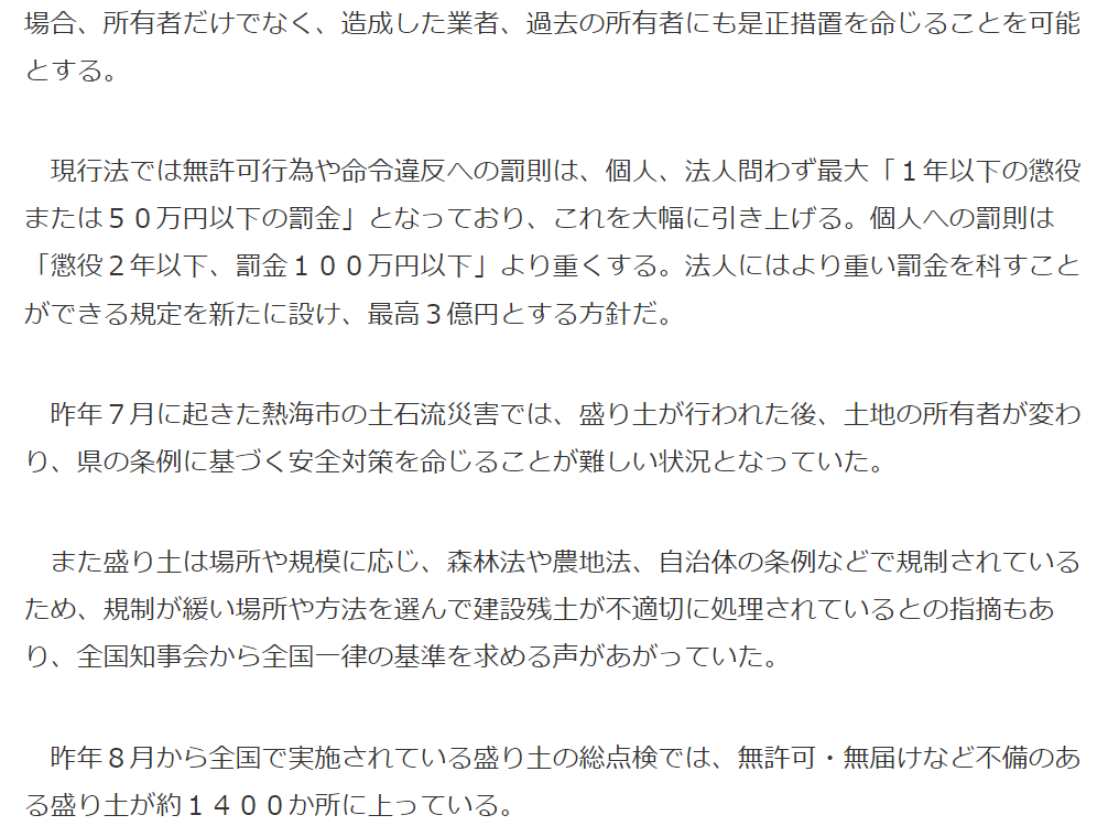 では違法盛り土に関する記事を引用して、声に出して読みたい3億円の記事を終わります。