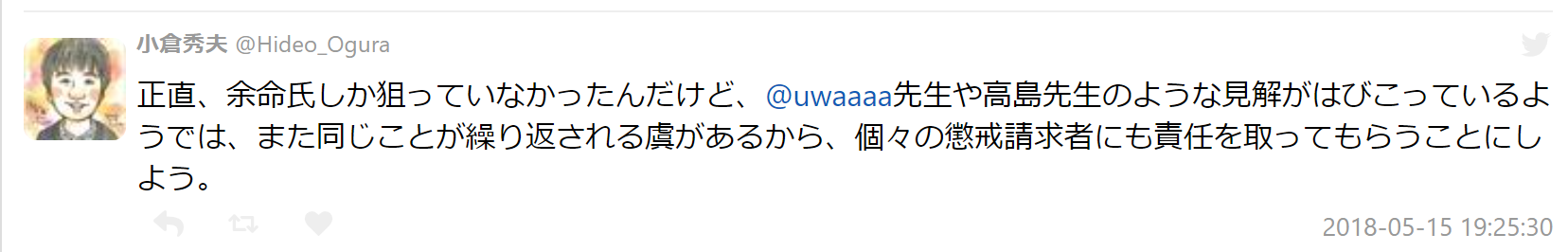 以下のツイートの文脈だと、余命に責任取らせる+懲戒請求者の提訴