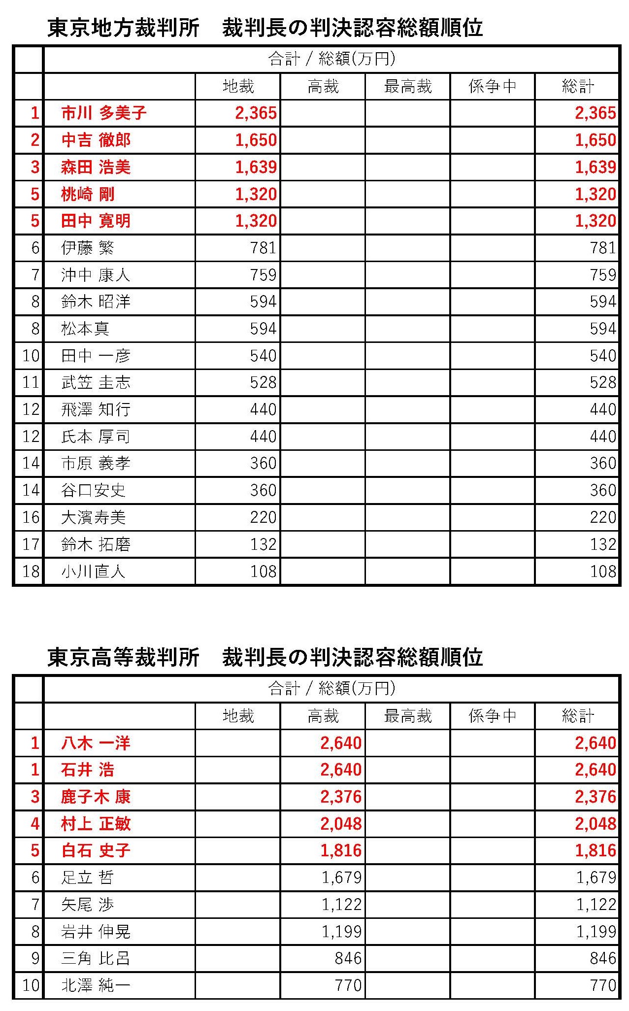 コロナ禍で苦しむ国民に、高額な賠償金を支払えと命令する裁判官ランキング。