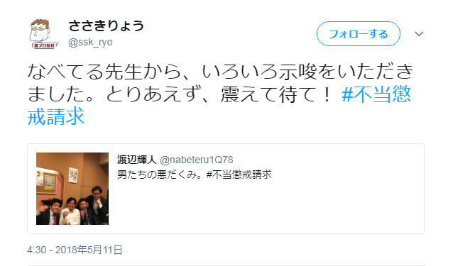 素晴らしい頭脳集団が合議されたのかどうか知りませんが、論理構成も覚束ない言いがかりのような訴状を作成し、しかも懲戒請求者とは関係ないデモの写真まで利用してヘイトの濡れ衣を着せ、裁判所は証拠も定かでない、損害の証明も全くできない訴状をブラック弁護士の言いなりに受け付けました。