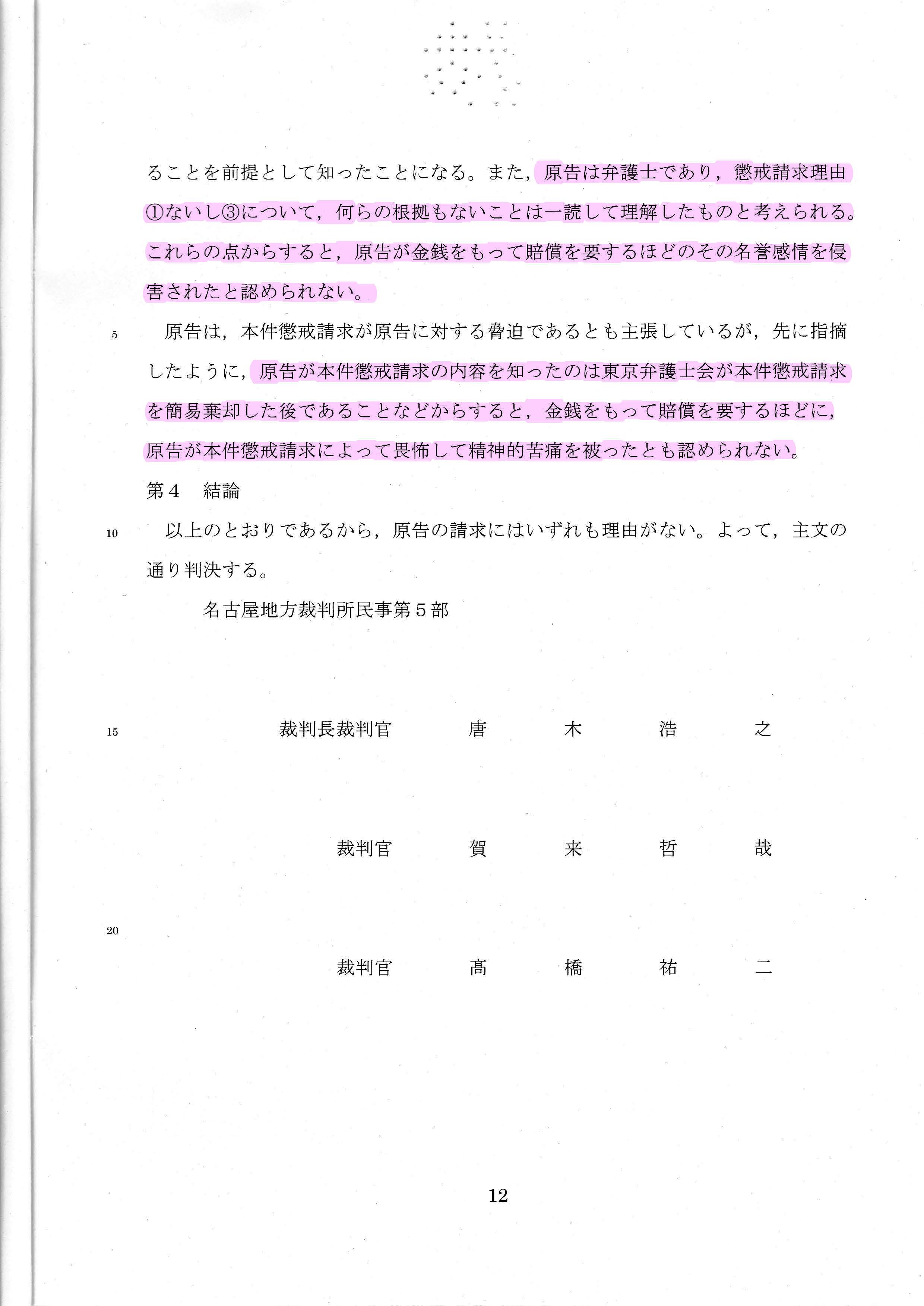 ■原告金竜介弁護士 名古屋地裁民事第5部 棄却判決 令和元年6月20日